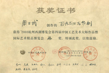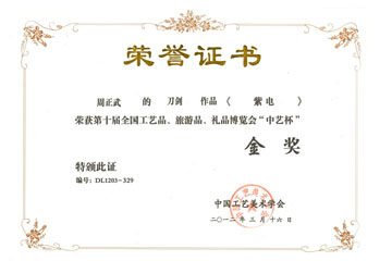 周正武,生于龍泉鑄劍世家,高級(jí)工藝美術(shù)師, 浙江省首席技師,浙江省工藝美術(shù)大師,國(guó)際級(jí)鑄劍大師,中國(guó)傳統(tǒng)工藝大師,國(guó)家級(jí)非物質(zhì)文化遺產(chǎn)--龍泉寶劍鍛制技藝傳承人……