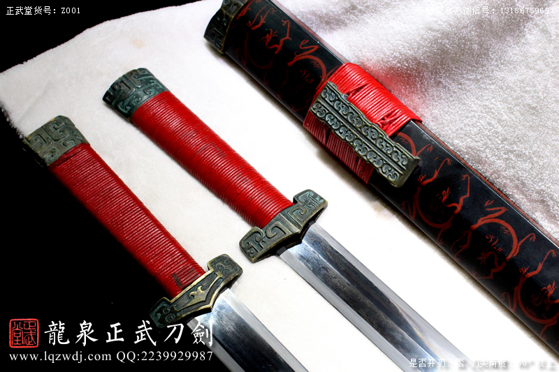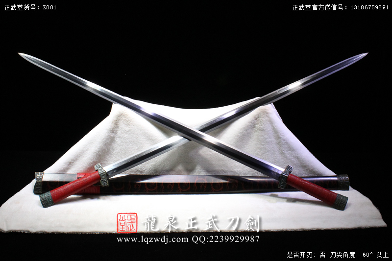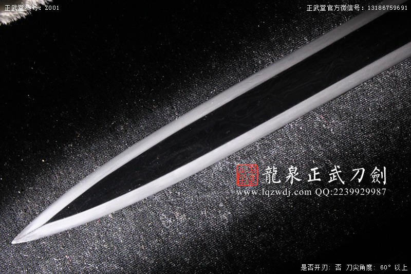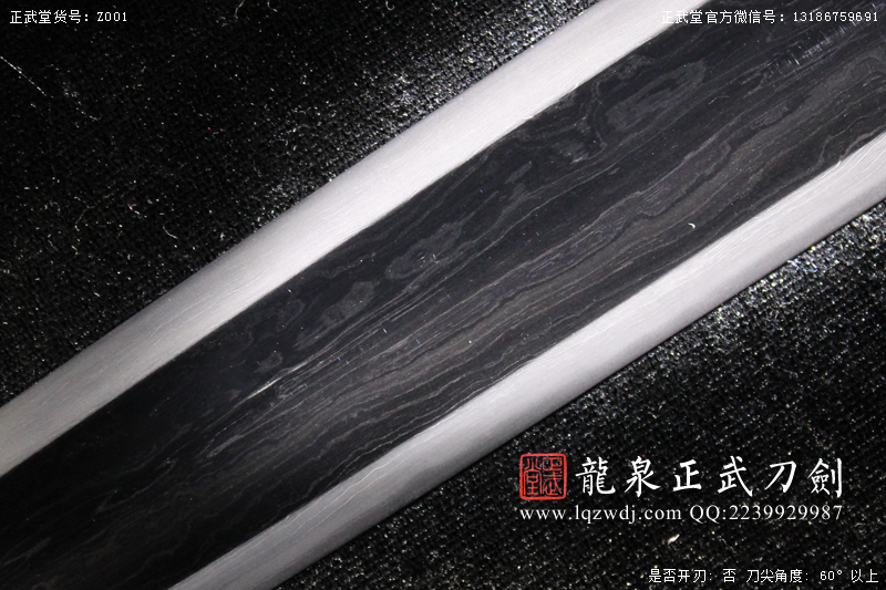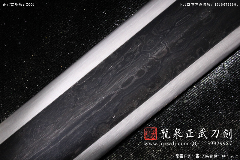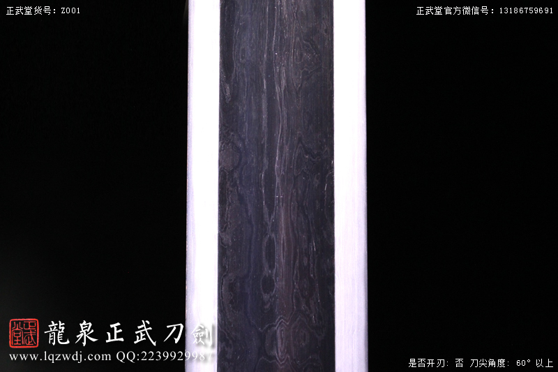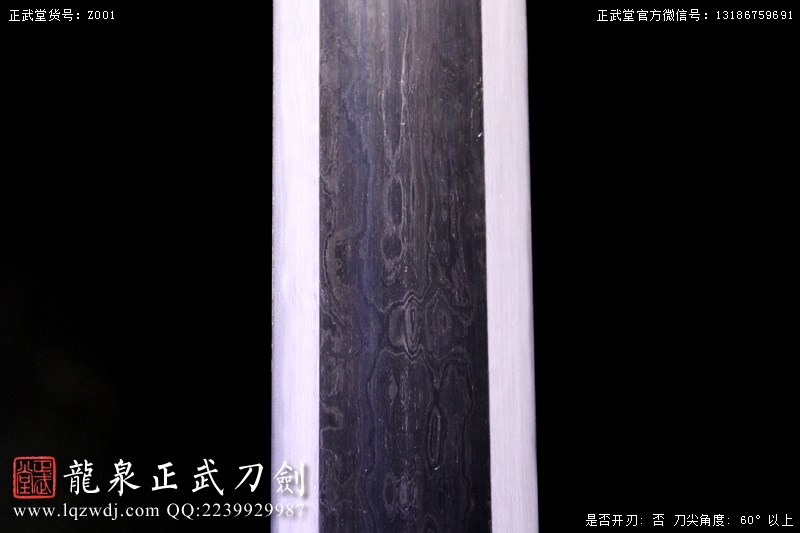 作品鍛造工藝說明:手工折疊鍛打花紋刀劍,折疊鍛打16000余層,夾鋼復(fù)合,刃身采用中等研磨工藝,硬度:58度。