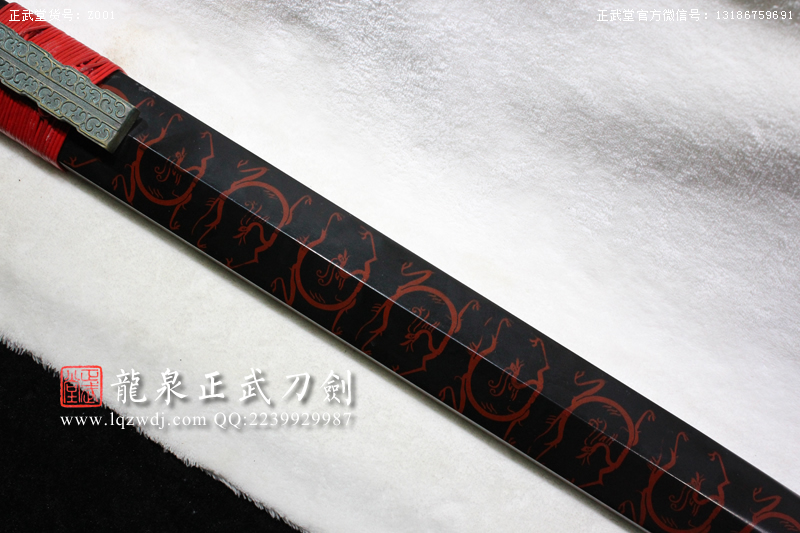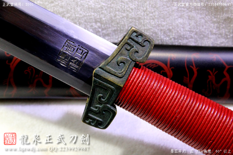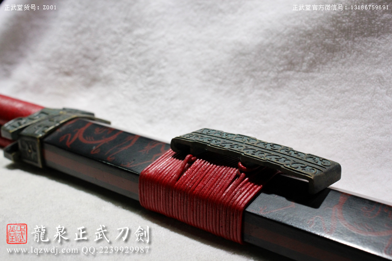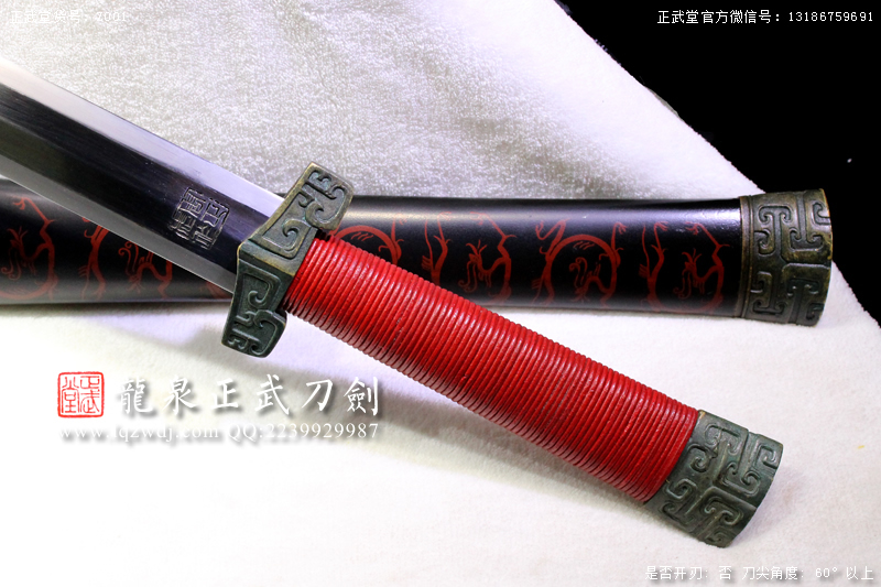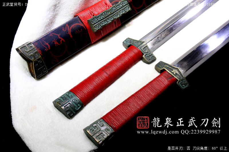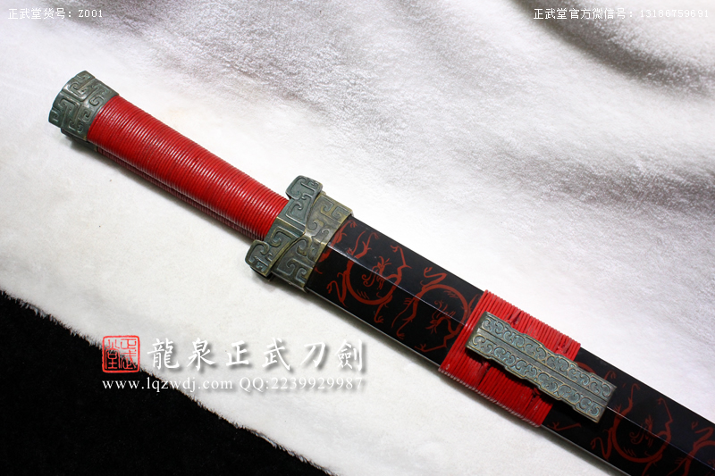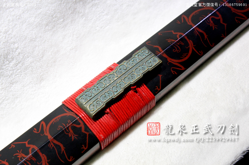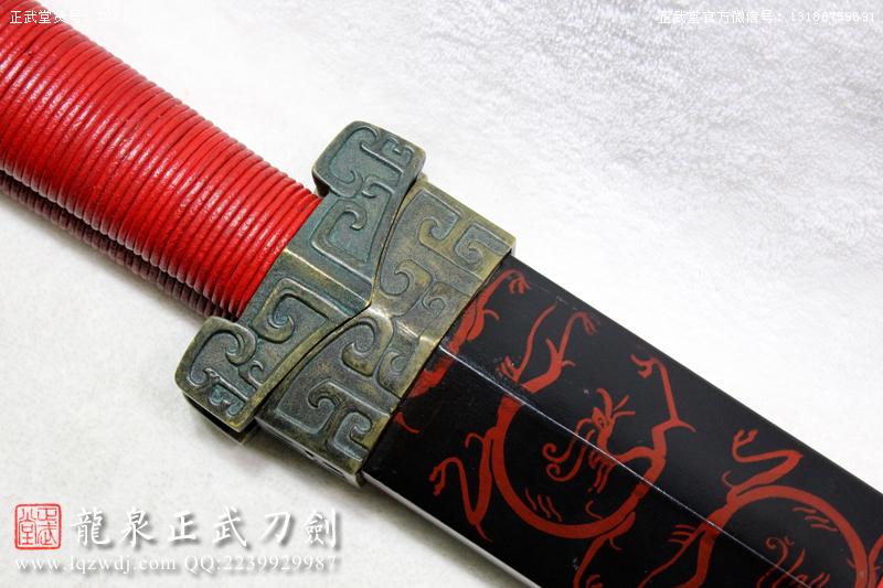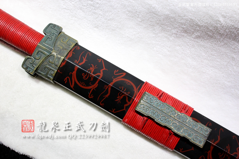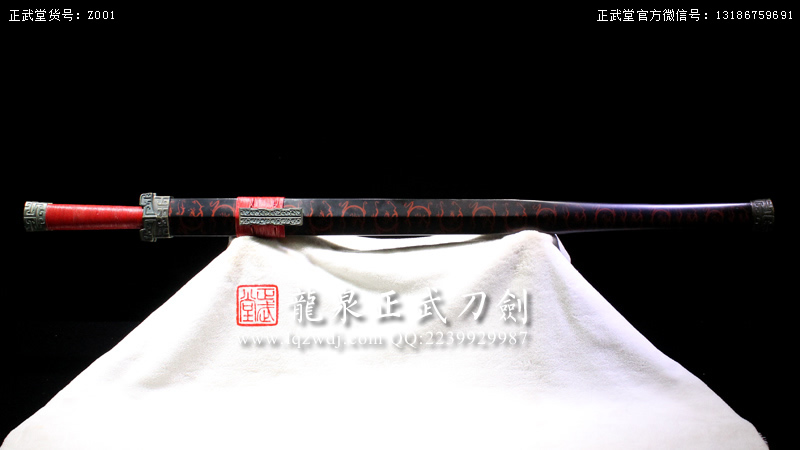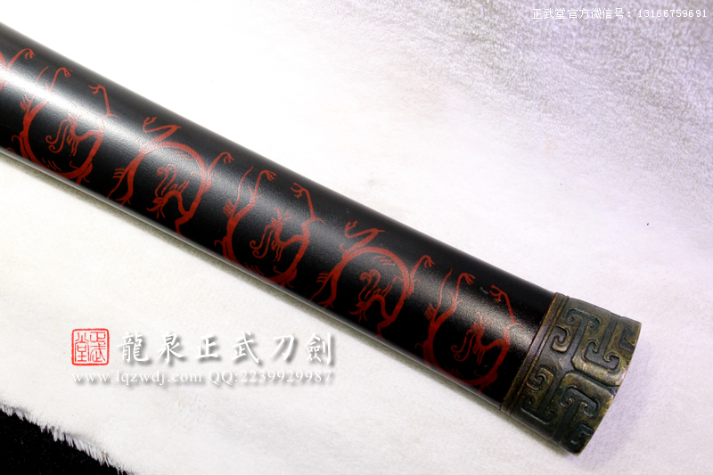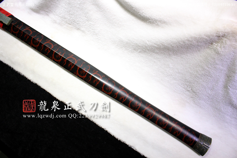 尺寸:全長:105.3CM;刃長:83CM; 柄長:17CM; 刃寬:3.6CM; 刃厚:0.7CM;亞光漆鞘;木柄外綁紅色柄繩,裝具為銅裝;