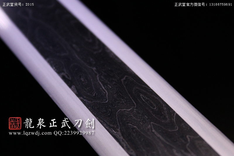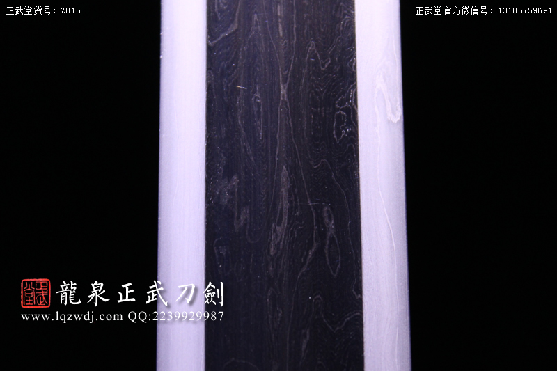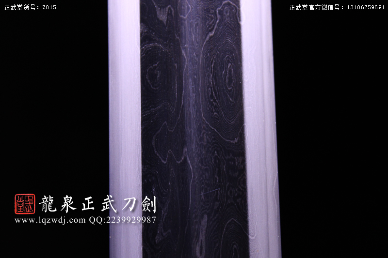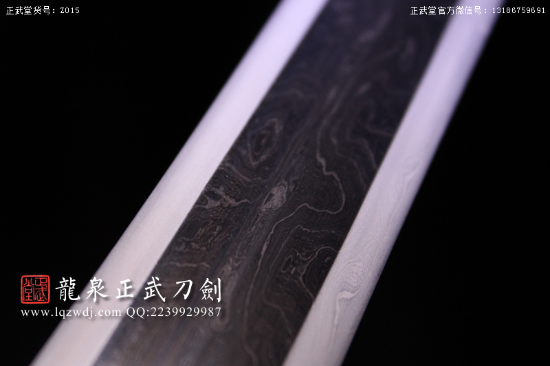 作品鍛造工藝說明:手工折疊鍛打花紋刀劍,特別加硬加強(qiáng)刀劍,覆土燒刃,折疊鍛打32000余層,夾鋼復(fù)合,上研研磨工藝,硬度:60度