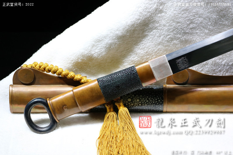作品名稱:手鍛四方鍛黑魚皮鞘南北朝環(huán)刀