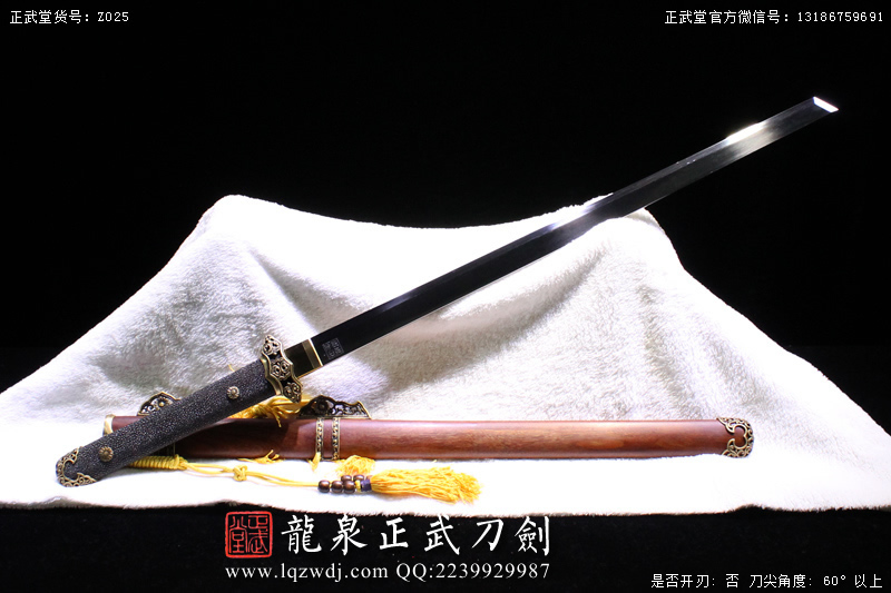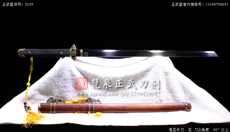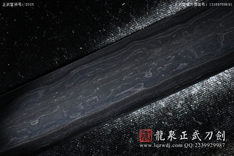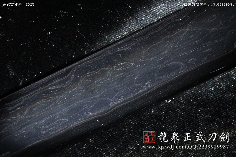 作品鍛造工藝說明:折疊鍛打4000余層,夾鋼復合,劍刃采用一般研磨工藝,硬度:56度。