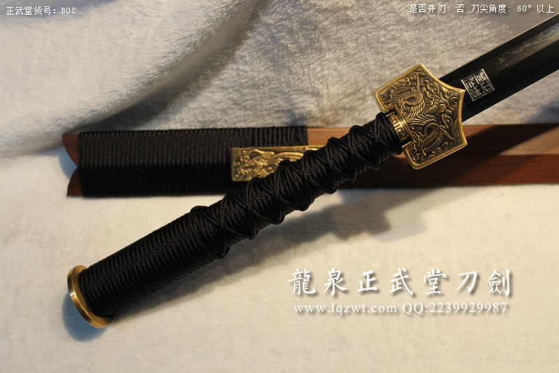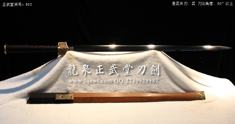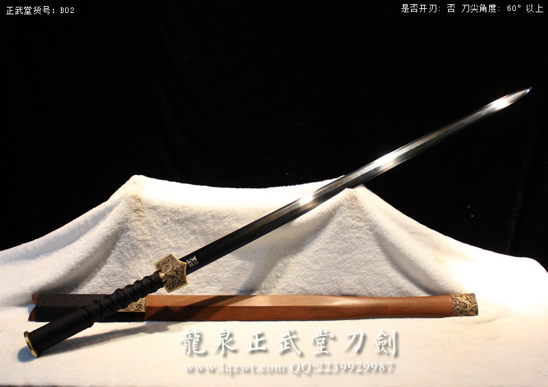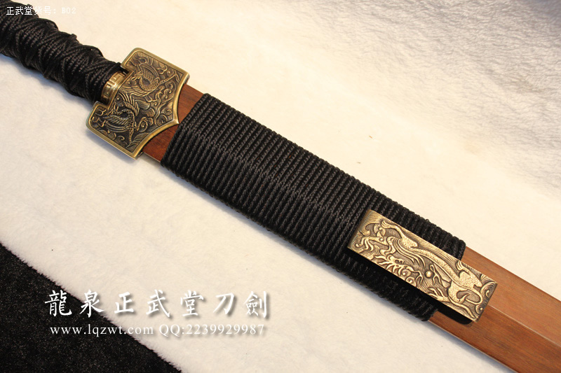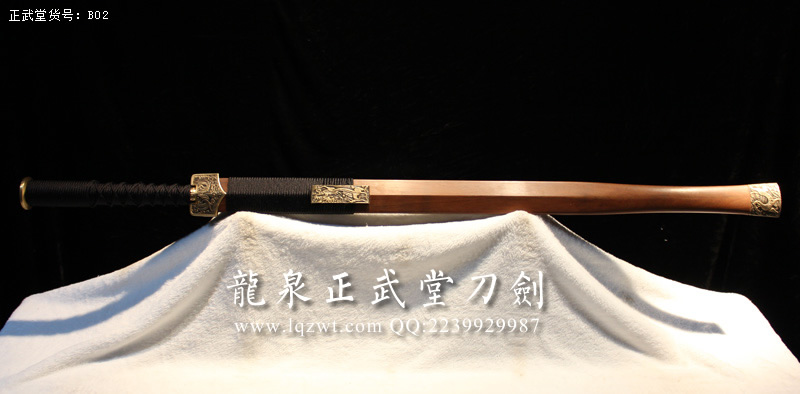 尺寸:全長110CM,刃長:77CM,柄長:24CM,刃寬:3.5CM,刃厚:0.8CM,綁黑色柄繩,蟻木鞘,裝具為銅材質(zhì);