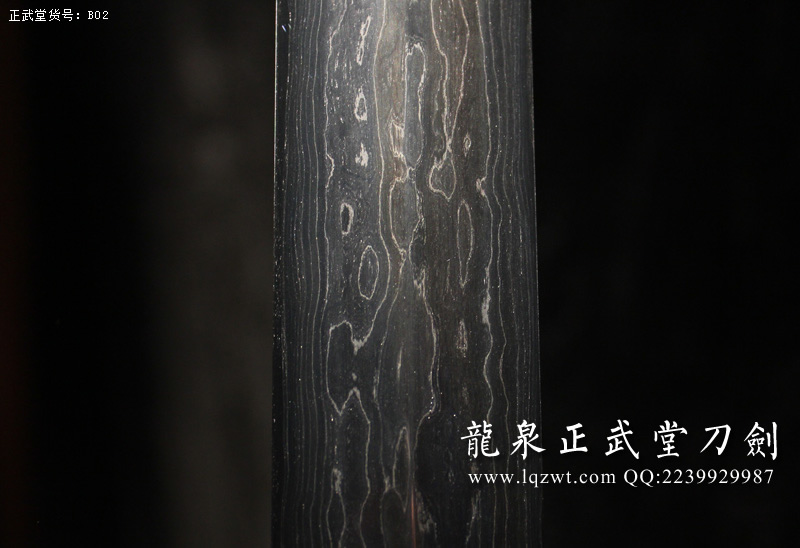 作品鍛造工藝說明:折疊鍛打2000余層,夾鋼復(fù)合,劍刃采用一般研磨工藝,硬度:56度。