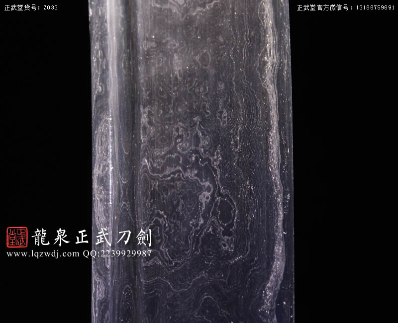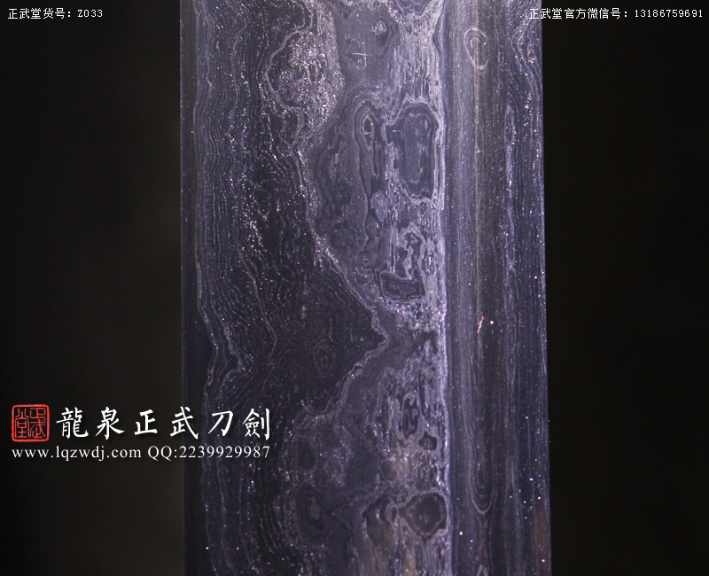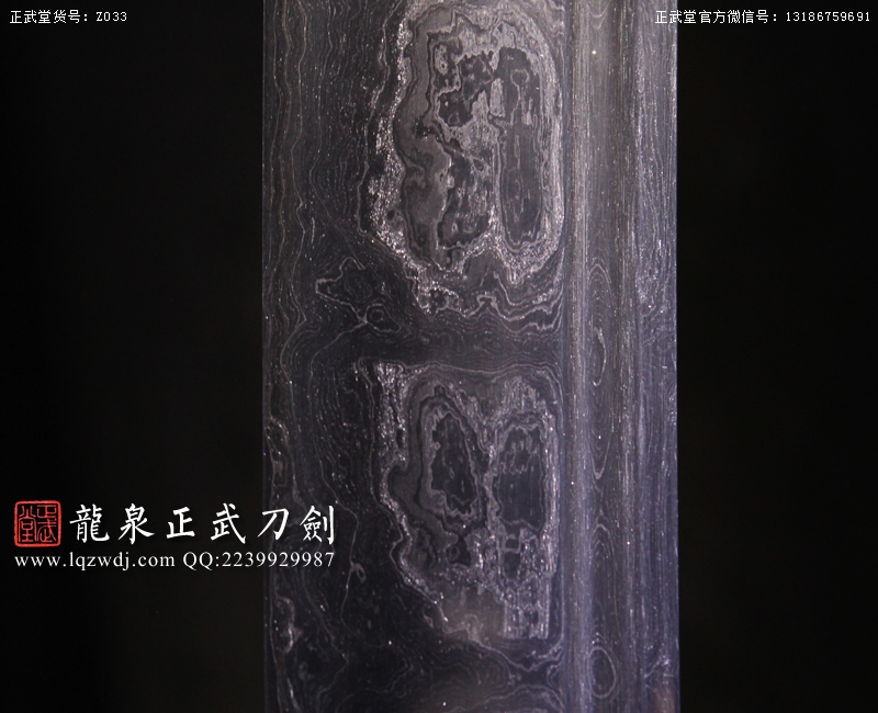 作品鍛造工藝說明:折疊鍛打4000余層,夾鋼復(fù)合,劍刃采用一般研磨工藝,硬度:56度