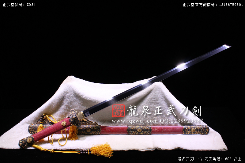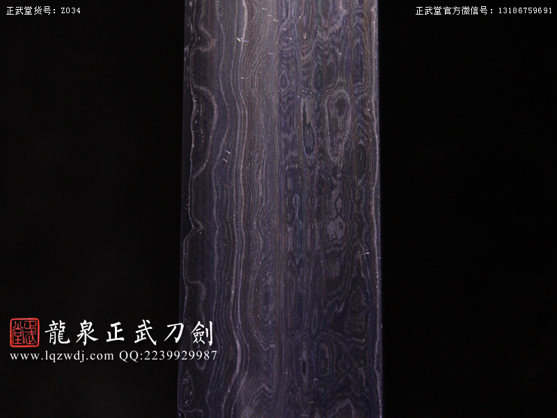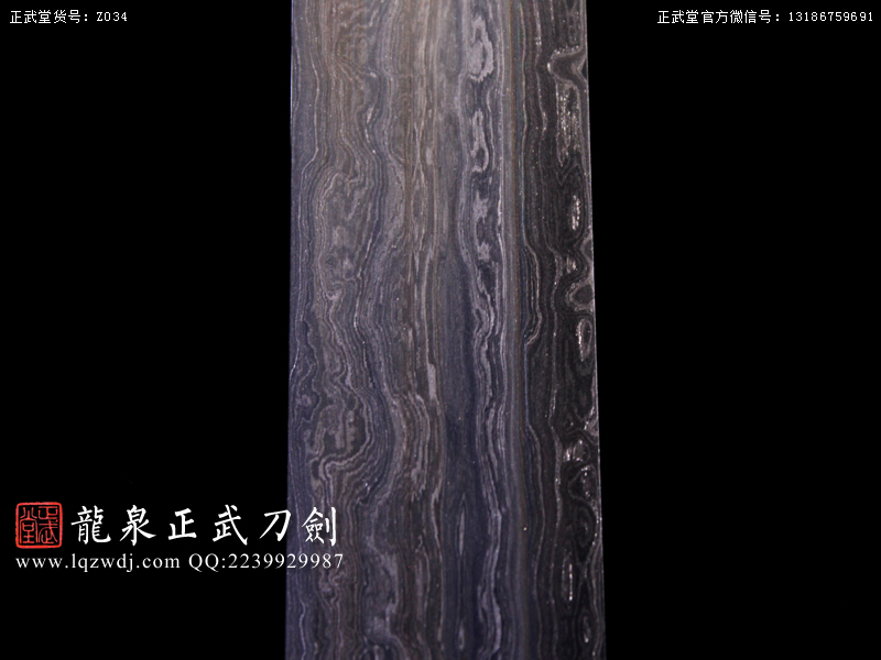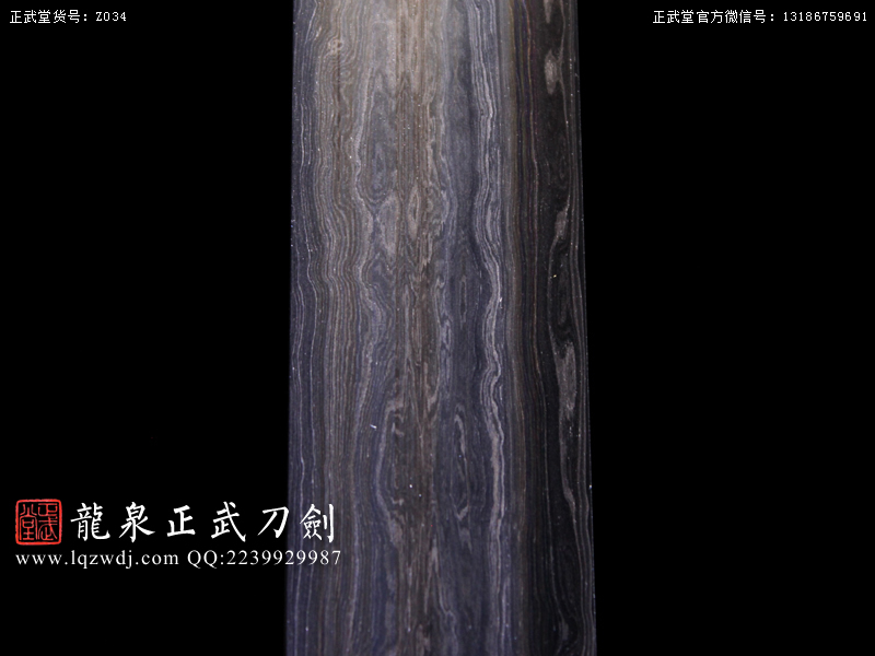 作品鍛造工藝說明:折疊鍛打4000余層,夾鋼復(fù)合,劍刃采用一般研磨工藝,硬度:56度