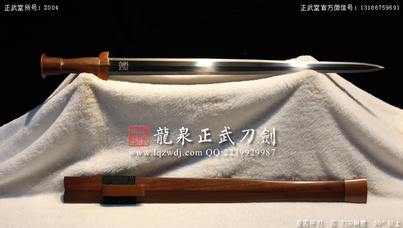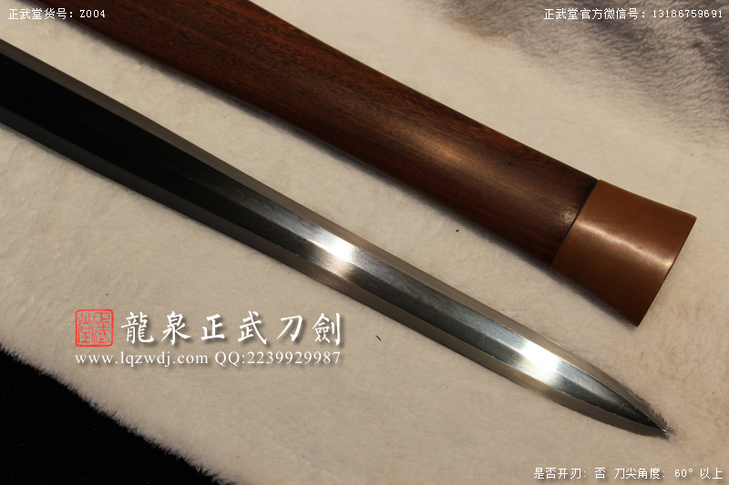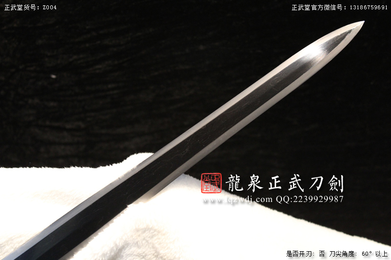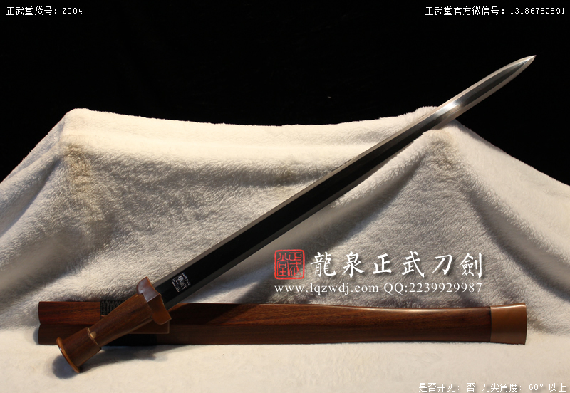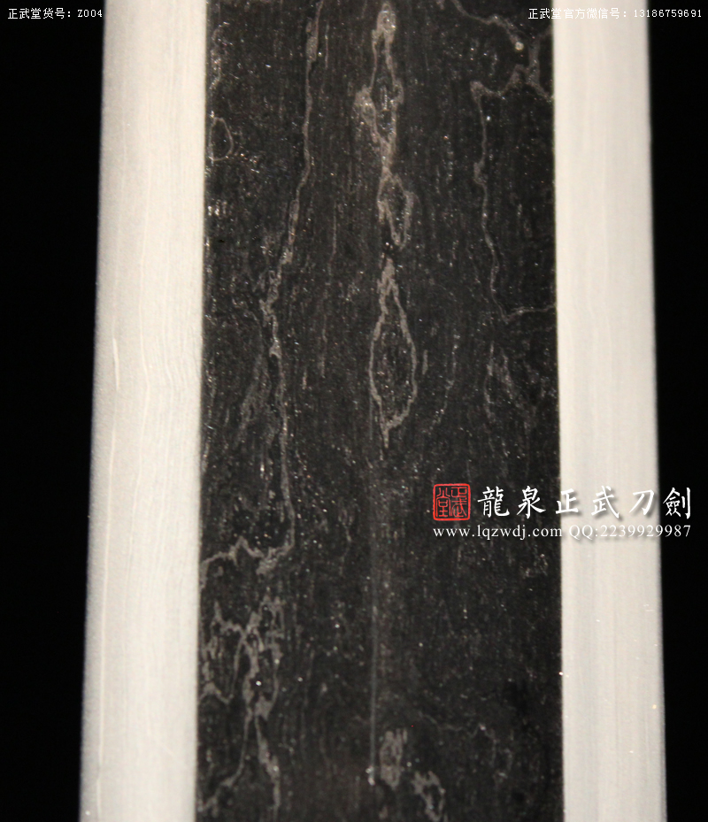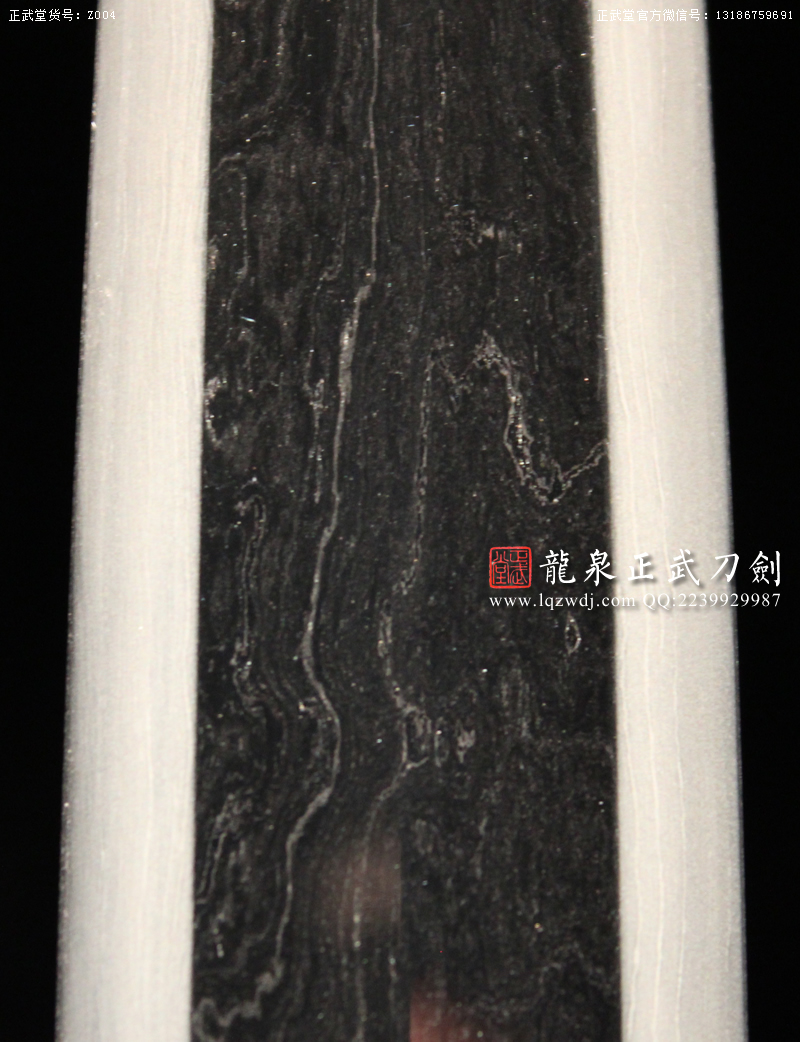 作品鍛造工藝說明:手工折疊鍛打花紋刀劍,特別加硬加強(qiáng)刀劍,覆土燒刃,折疊鍛打32000余層,夾鋼復(fù)合,上研研磨工藝,硬度:60度
