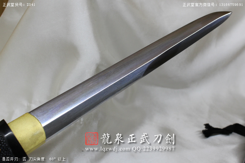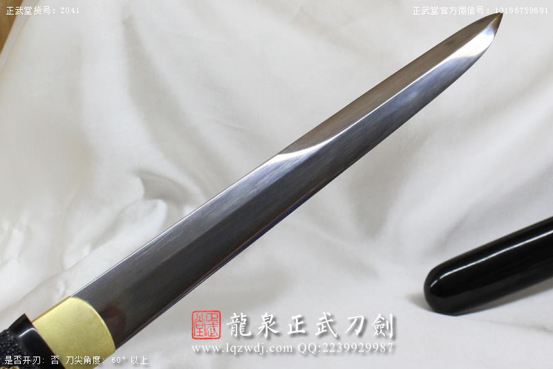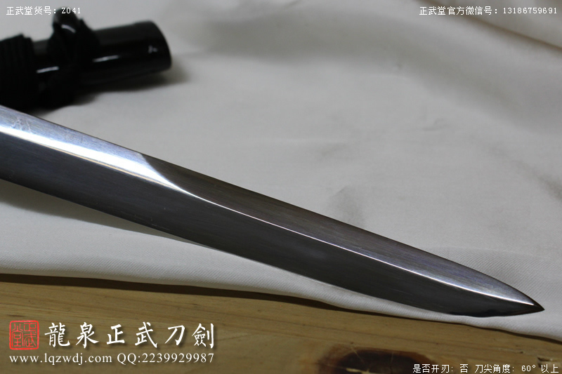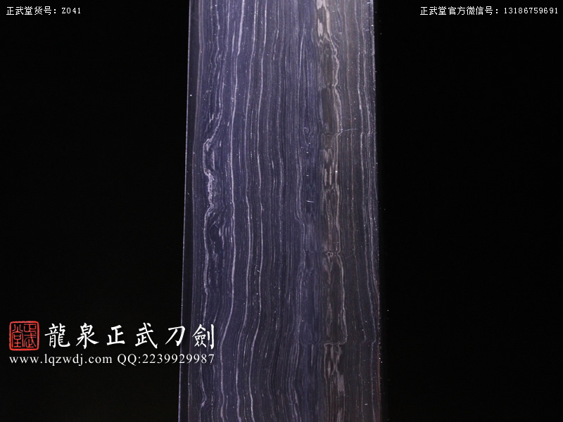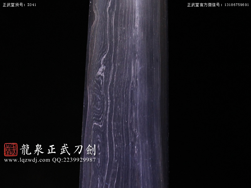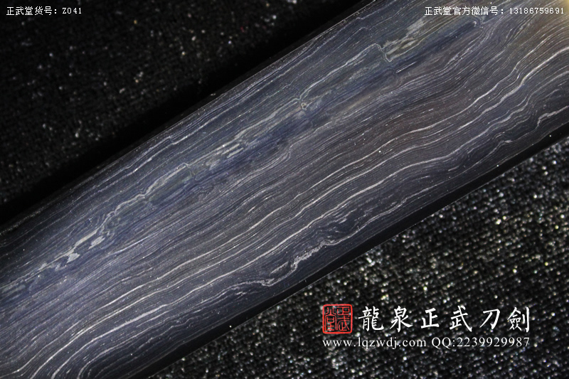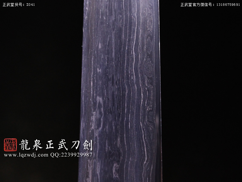 作品鍛造工藝說明:折疊鍛打4000余層,夾鋼復(fù)合,劍刃采用一般研磨工藝,硬度:56度。