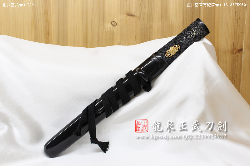 作品名稱:三枚地肌漆鞘黑魚皮柄諸刃短刀