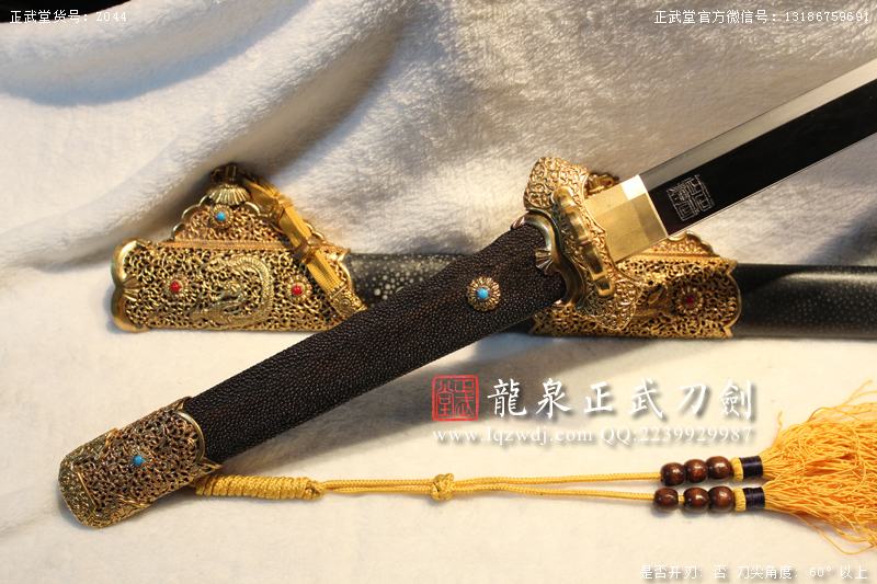 作品名稱:手鍛光復級旋焊鍛黑魚皮鞘八龍本色式裝切刃造唐刀