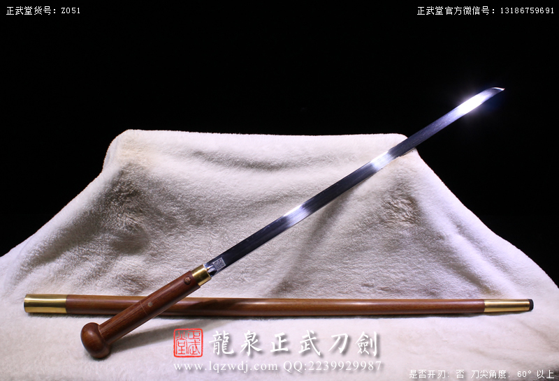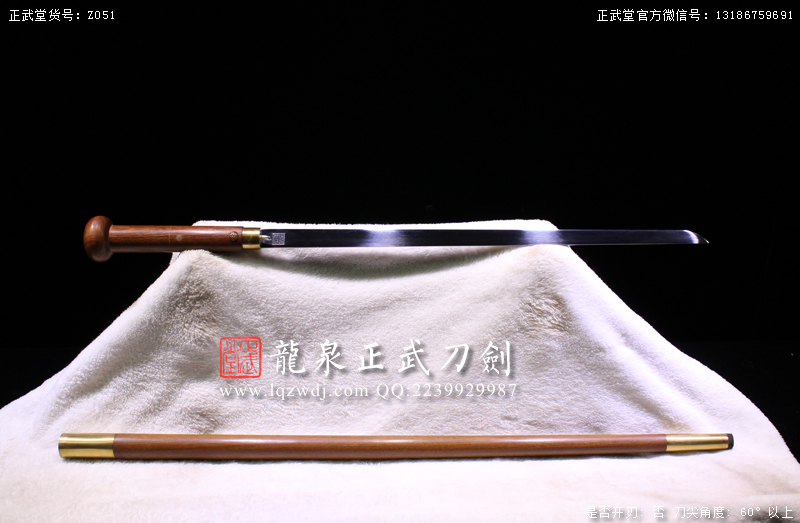 尺寸:全長(zhǎng)93,刃長(zhǎng)50,柄長(zhǎng)18,刃寬2.1,刃厚0.7,重1.9斤,未含鞘重1斤。