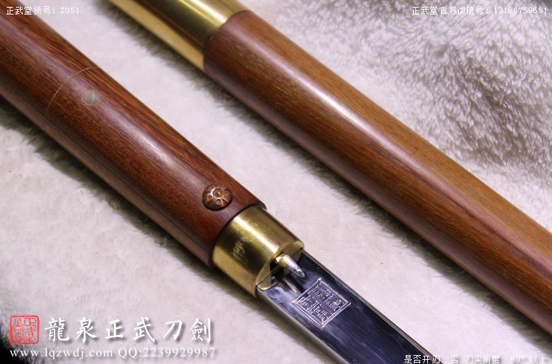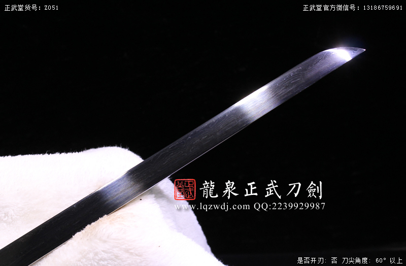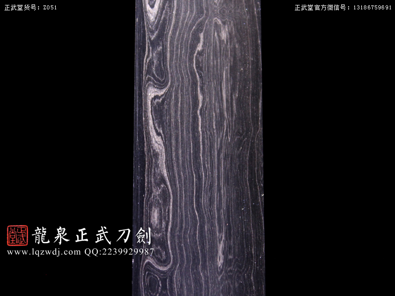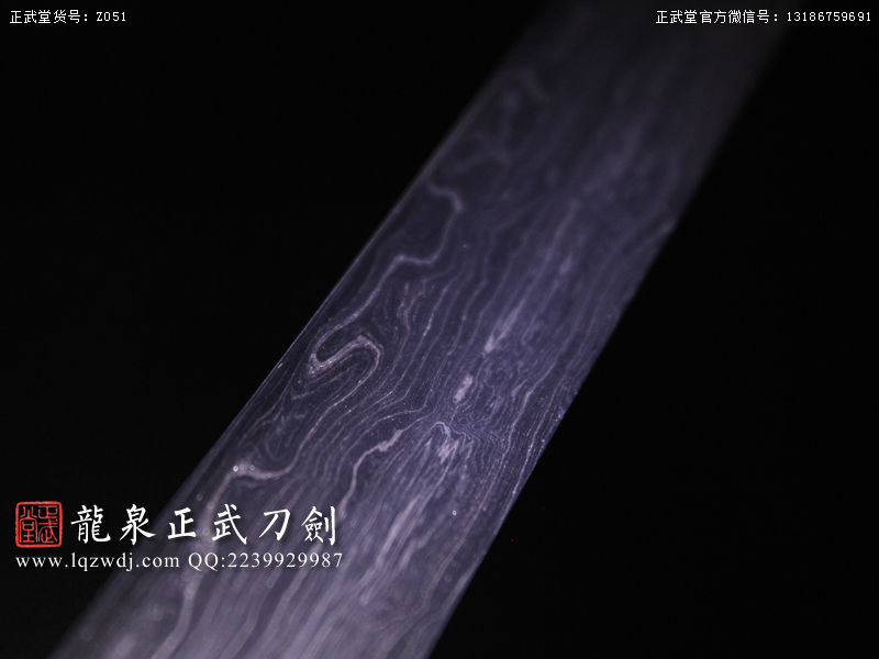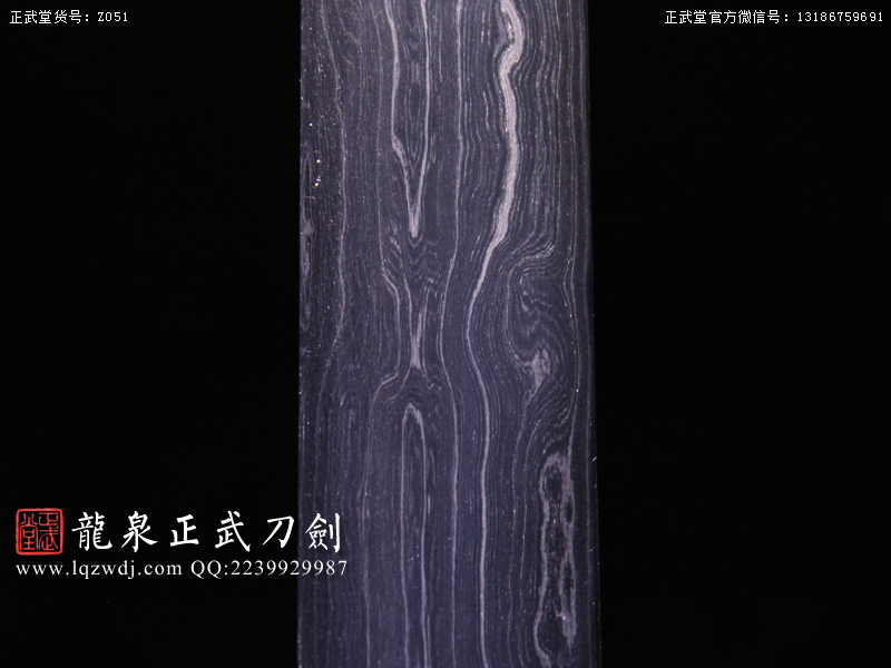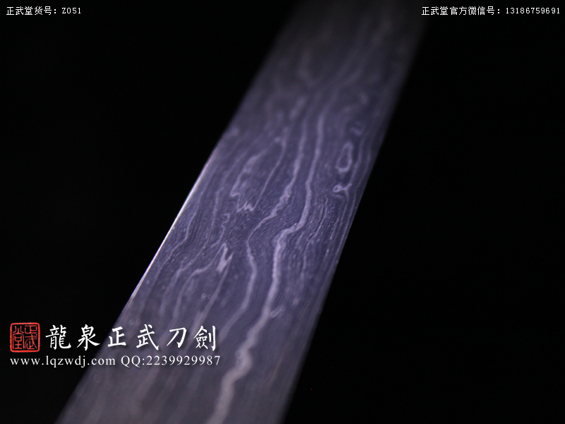 作品鍛造工藝說明:折疊鍛打4000余層,夾鋼復(fù)合,劍刃采用一般研磨工藝,硬度:56度
