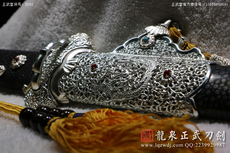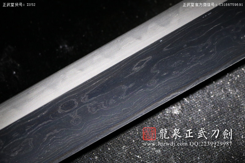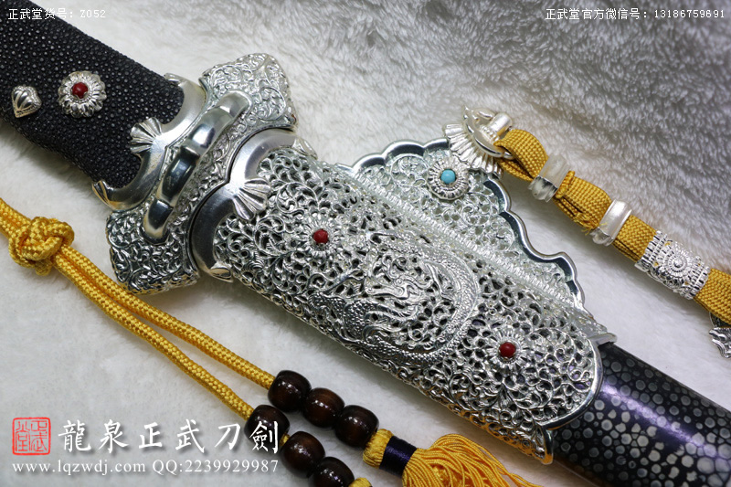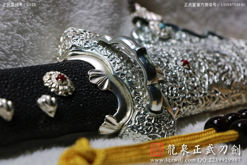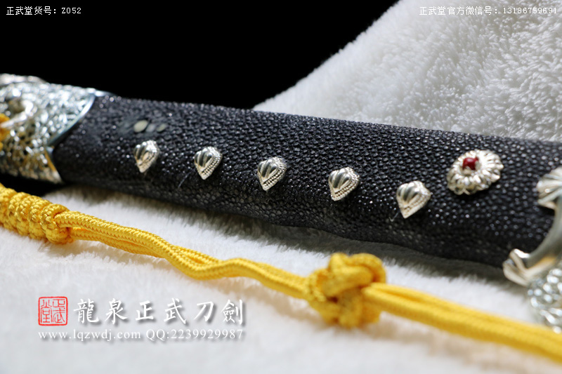 作品名稱(chēng):手鍛包鋼敷土燒刃黑魚(yú)皮鞘八龍豪華銅裝切刃造唐刀