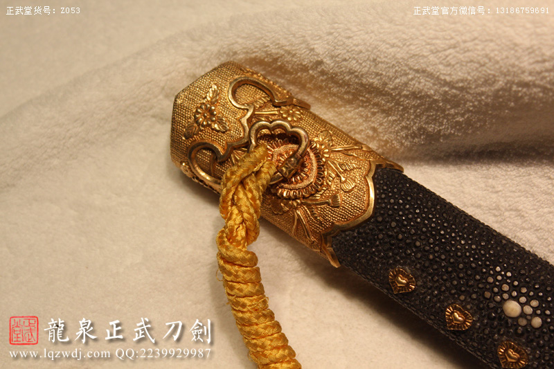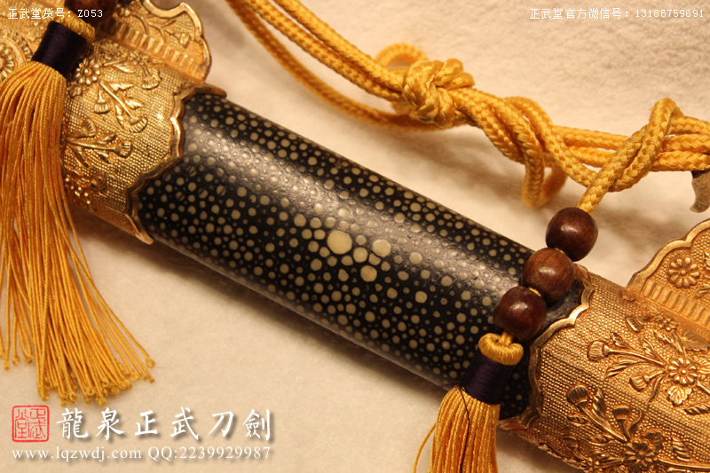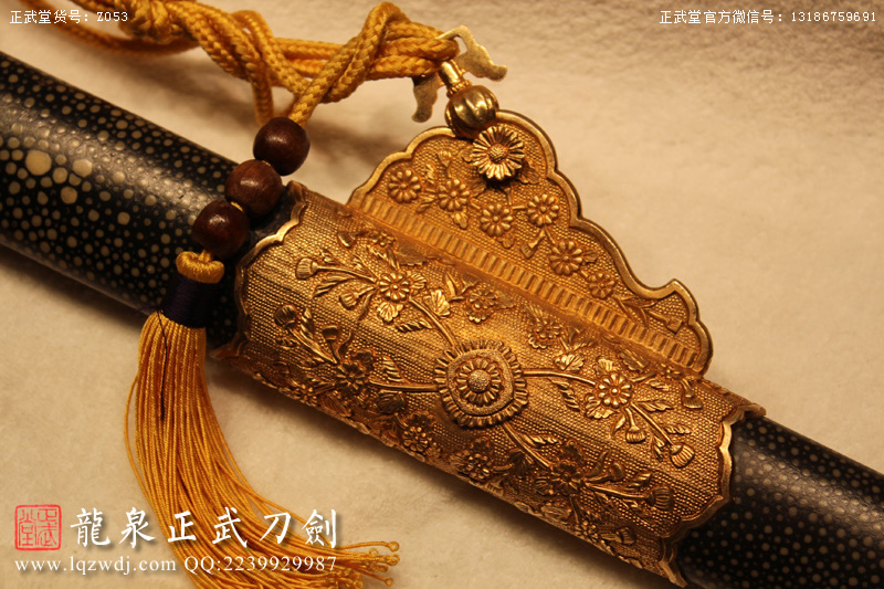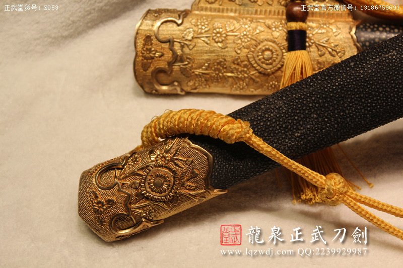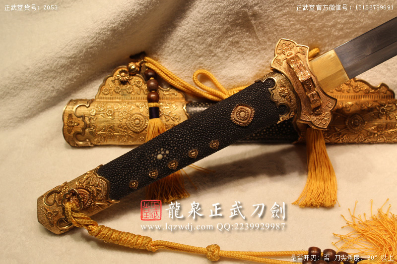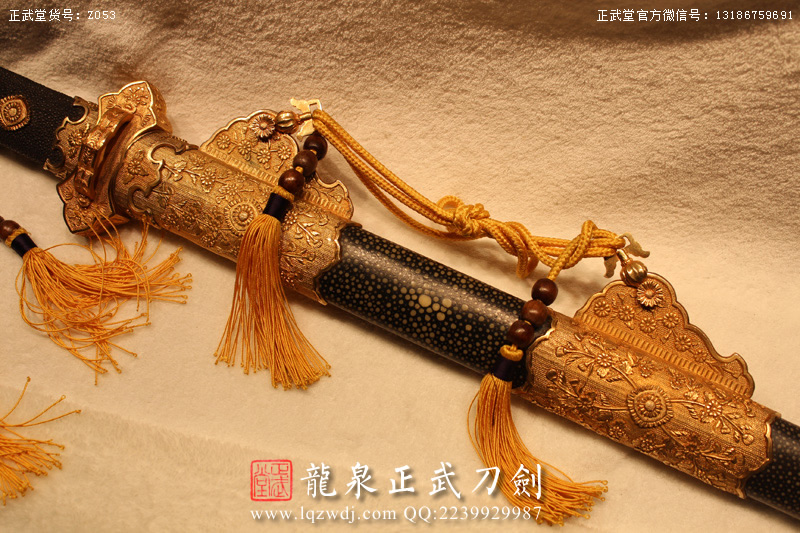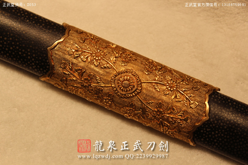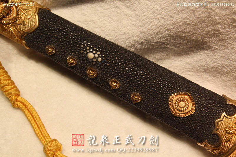 作品名稱:手鍛草鋼鍛黑魚皮鞘手雕豪華裝切刃造唐刀