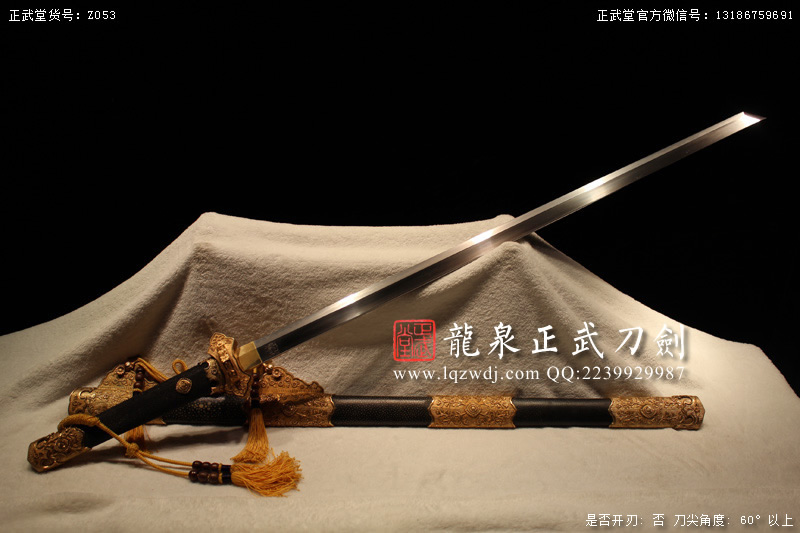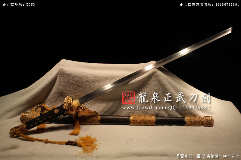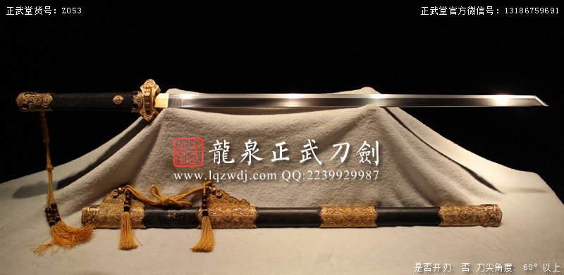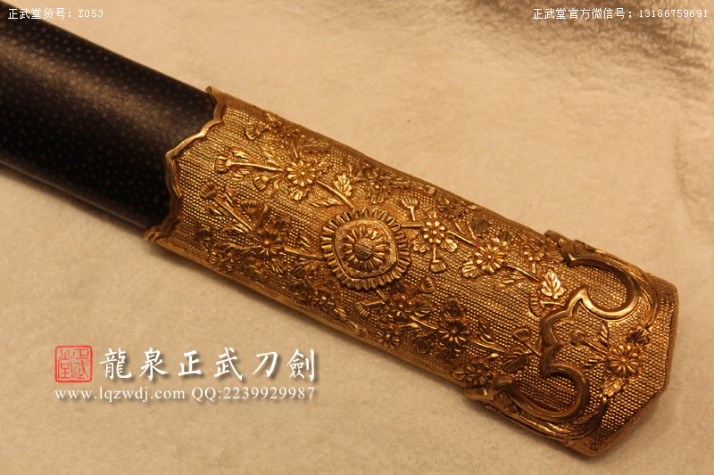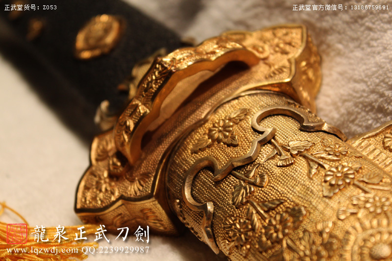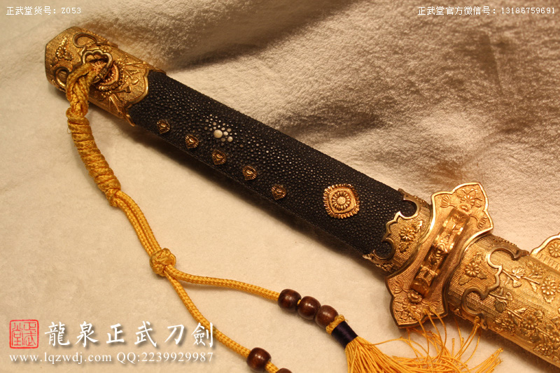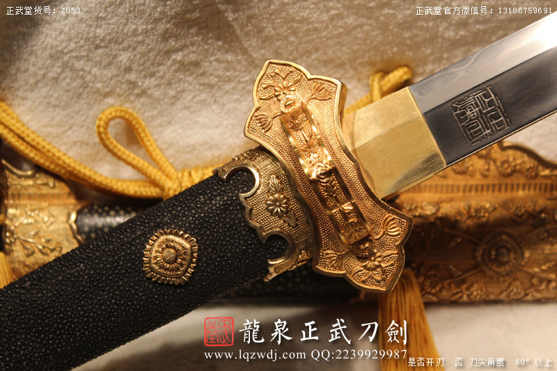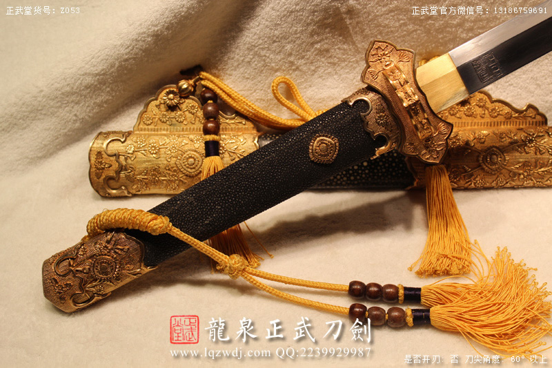 作品名稱:手鍛草鋼鍛黑魚皮鞘手雕豪華裝切刃造唐刀
