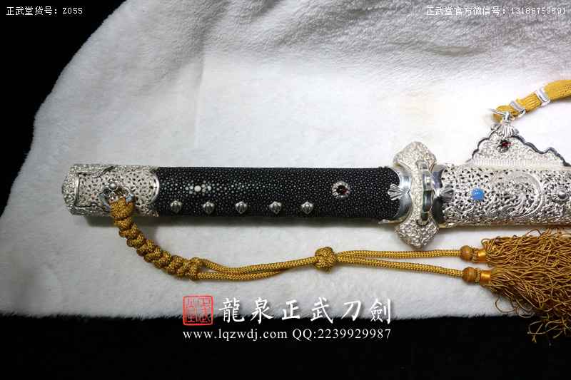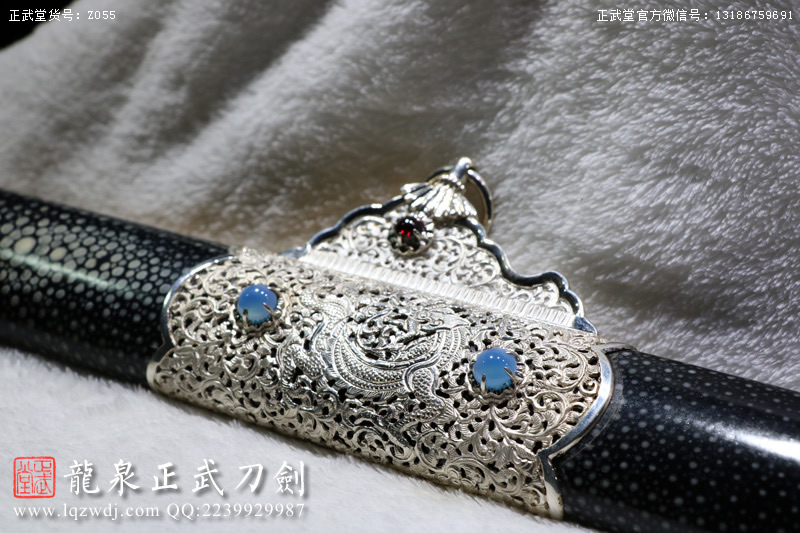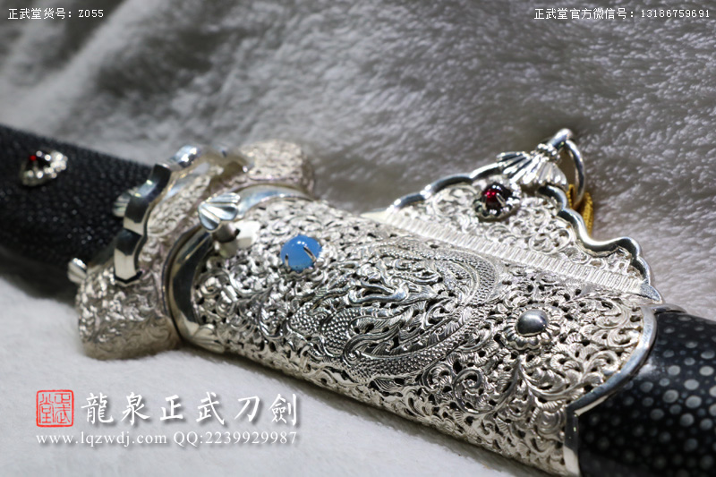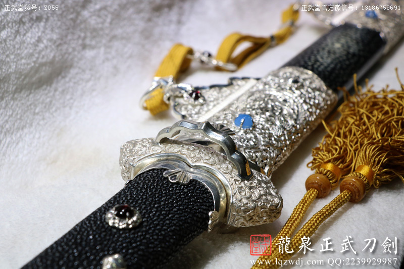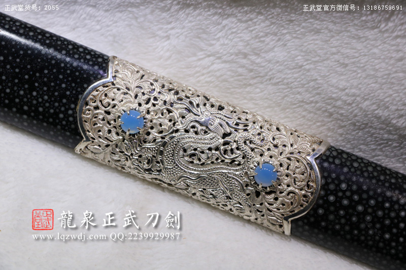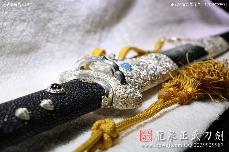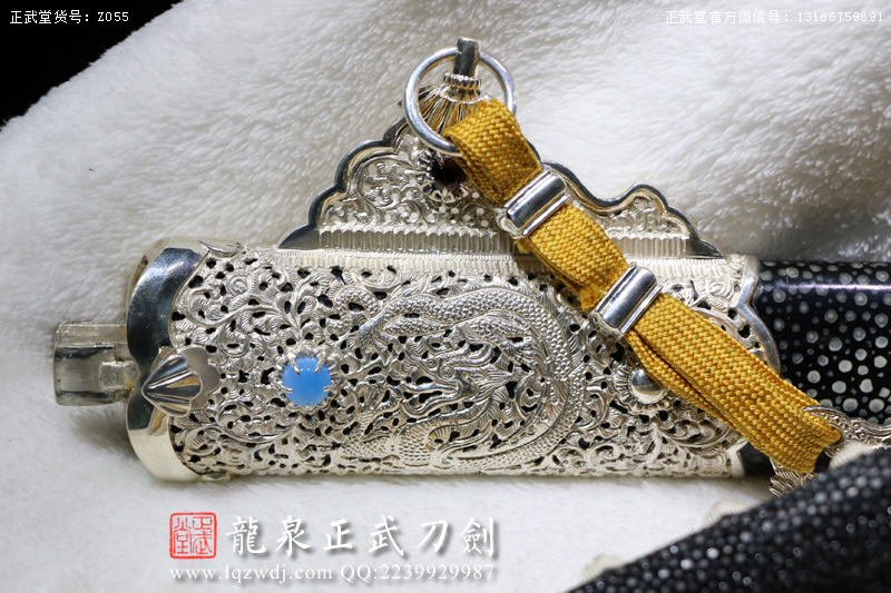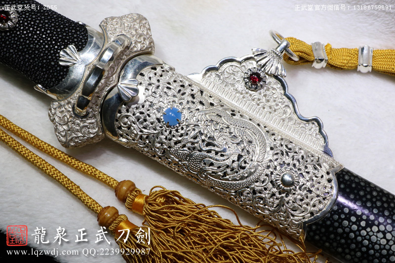 作品名稱:手鍛隕鐵鍛手雕銀八龍豪華裝切刃造唐刀