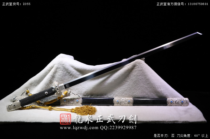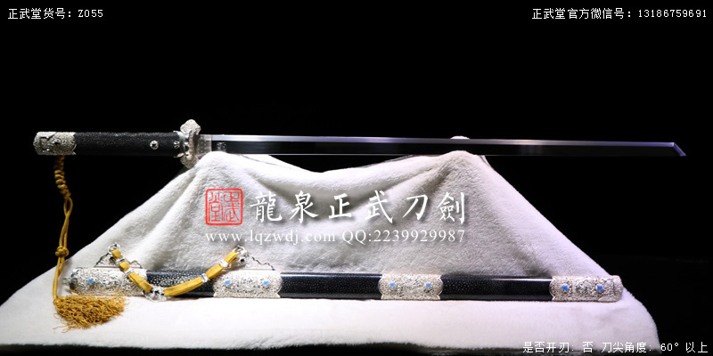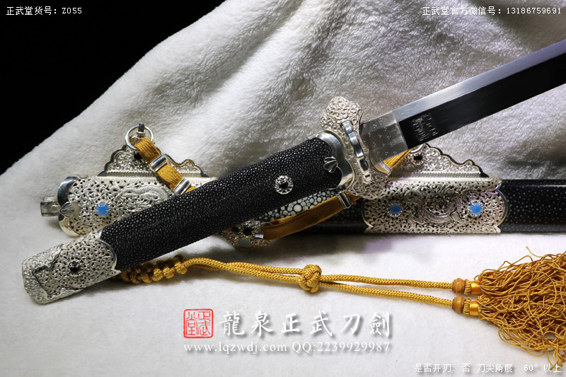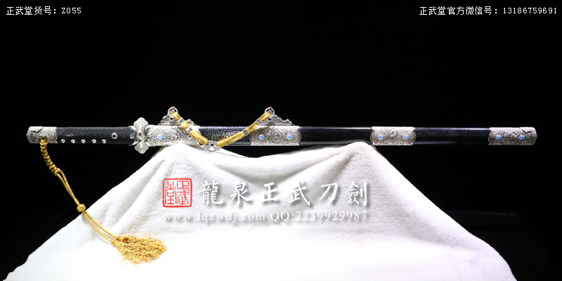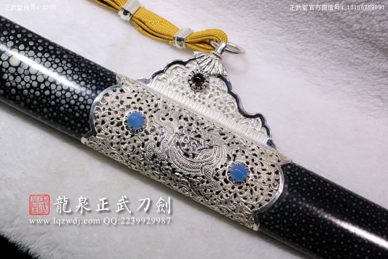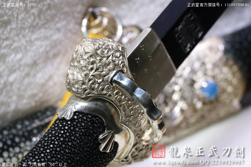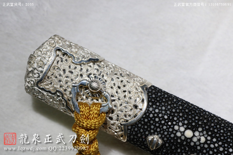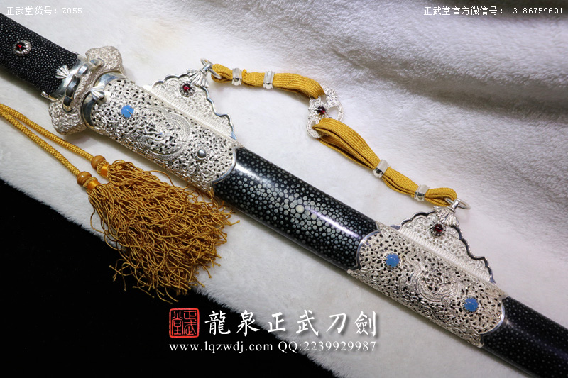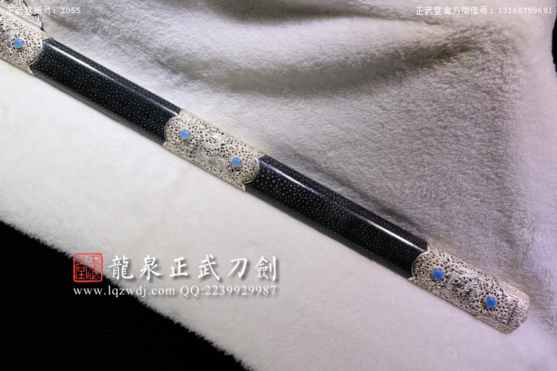 作品名稱:手鍛隕鐵鍛手雕銀八龍豪華裝切刃造唐刀
