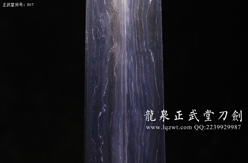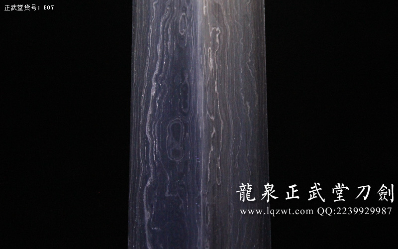 作品鍛造工藝說(shuō)明:折疊鍛打2000余層,夾鋼復(fù)合,劍刃采用一般研磨工藝,硬度:56度。