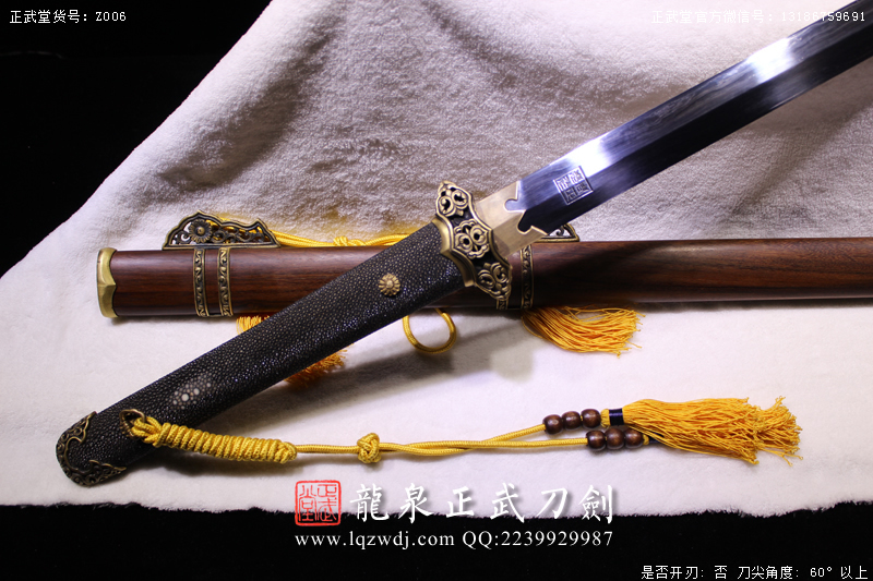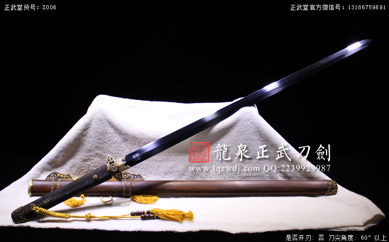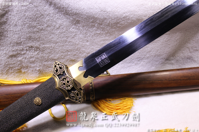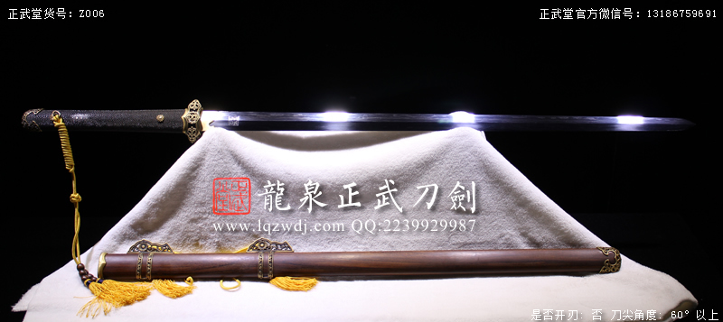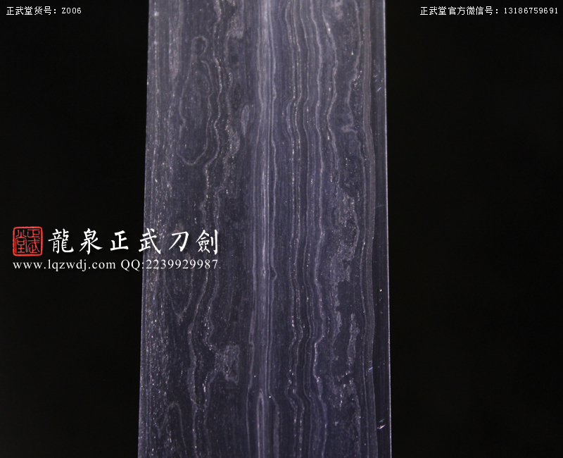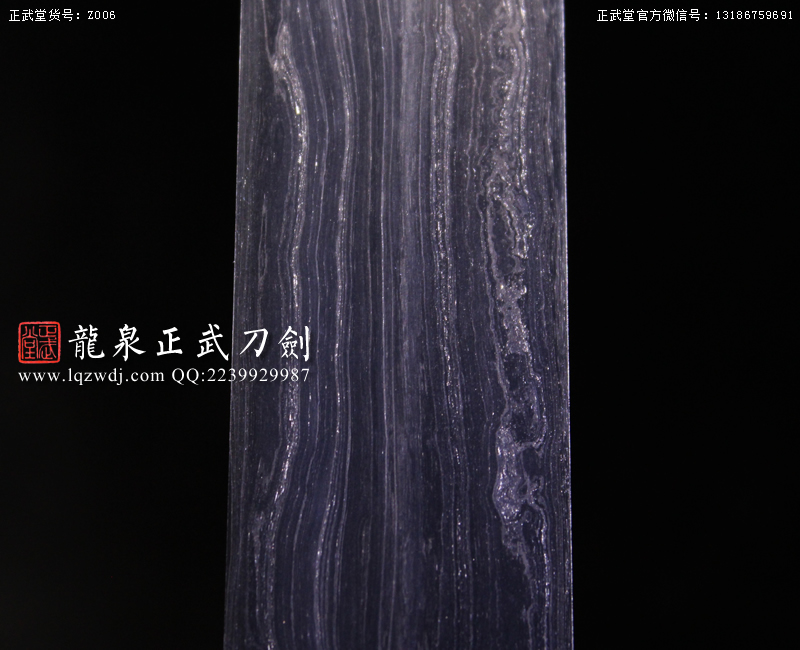作品鍛造工藝說明:折疊鍛打4000余層,夾鋼復(fù)合,劍刃采用一般研磨工藝,硬度:56度
