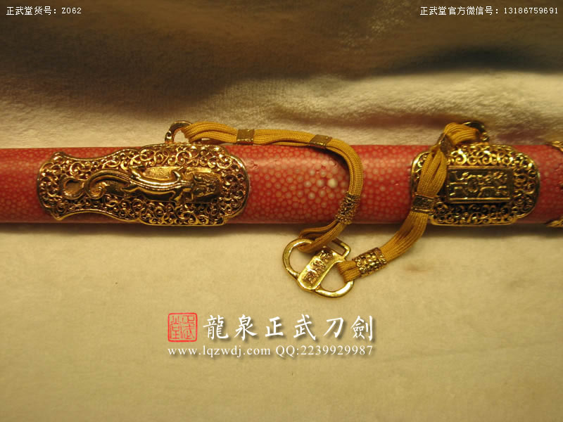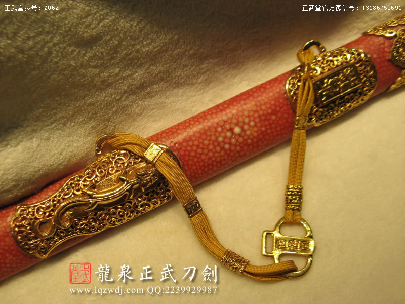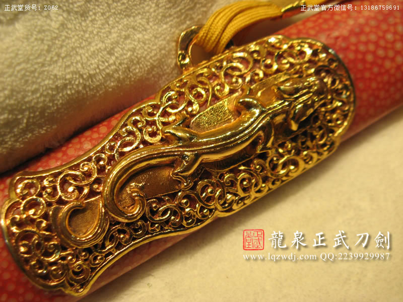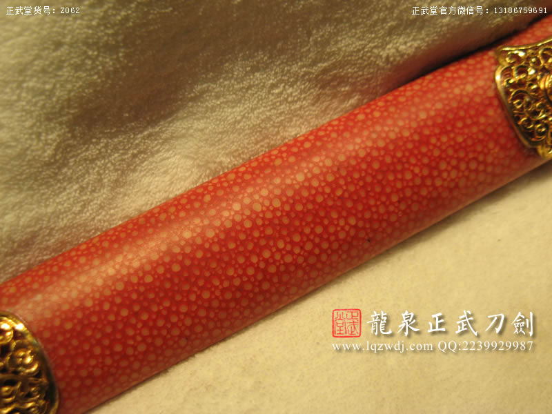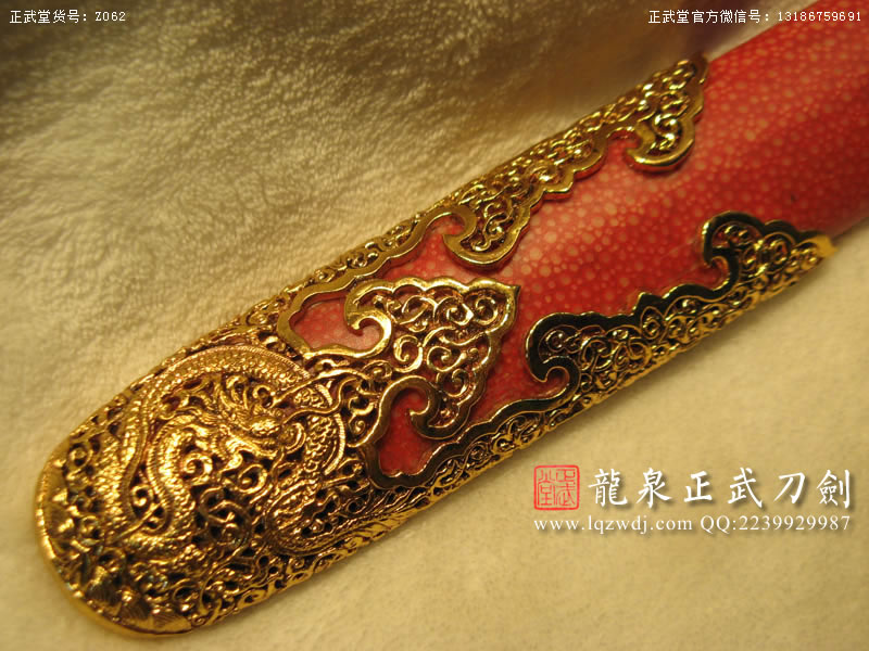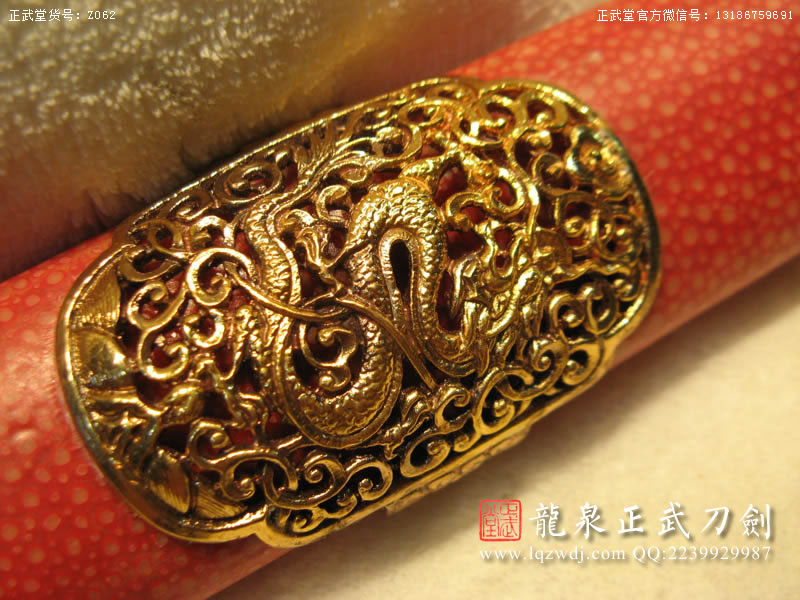 作品名稱:手鍛超級光復級紅魚皮鞘鏤空裝龍泉劍