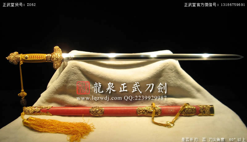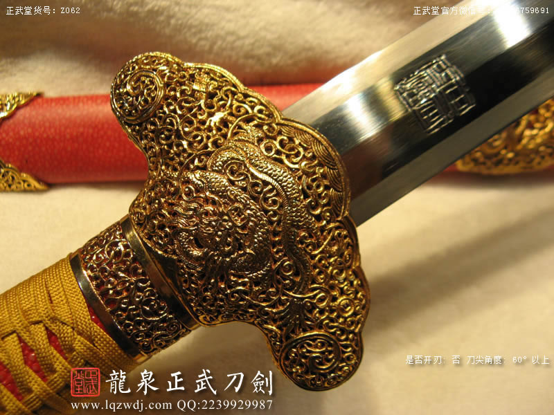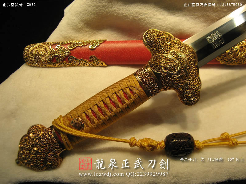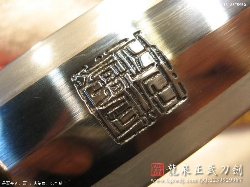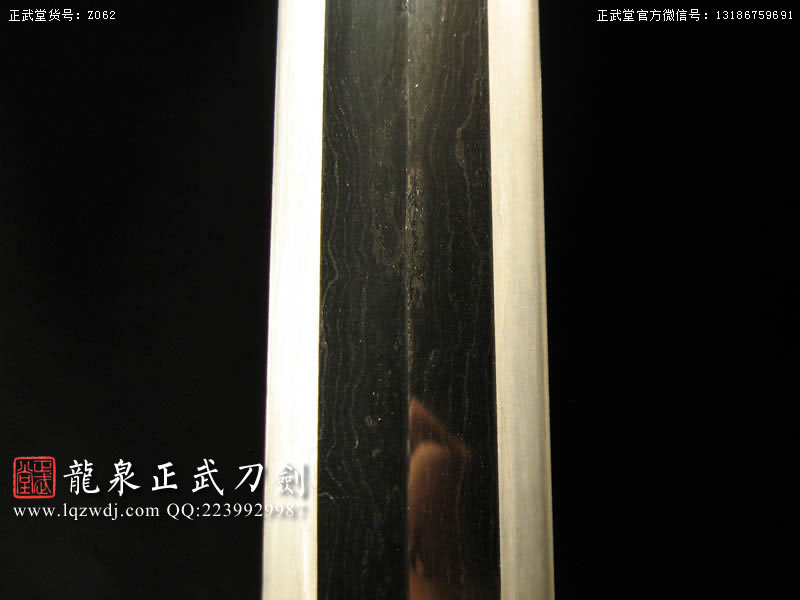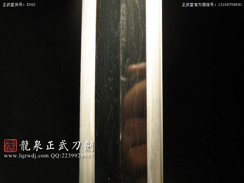 作品鍛造工藝說明:手工折疊鍛打花紋刀劍,特別加硬加強刀劍,覆土燒刃,折疊鍛打32000余層,夾鋼復合,上研研磨工藝,硬度:60度