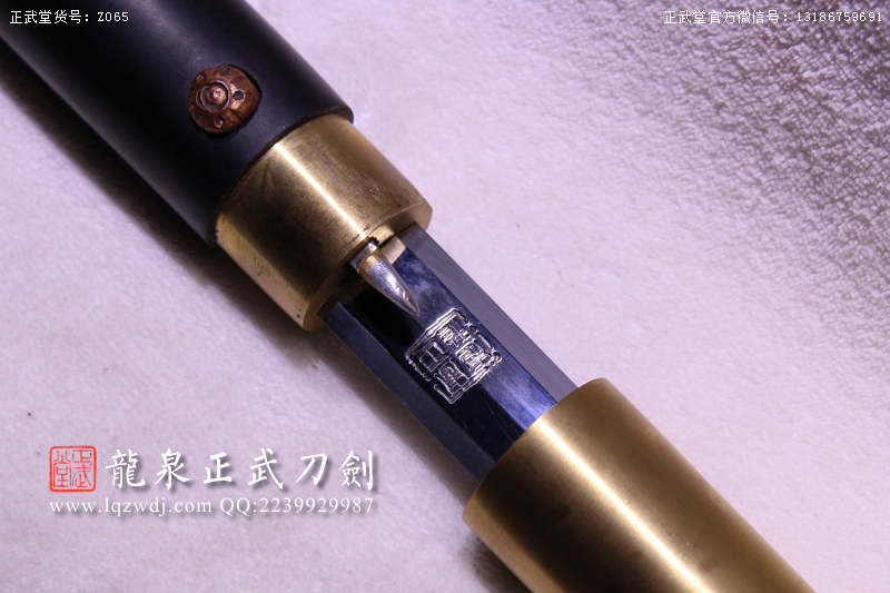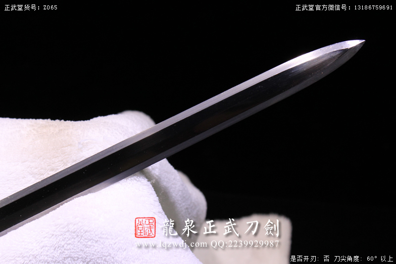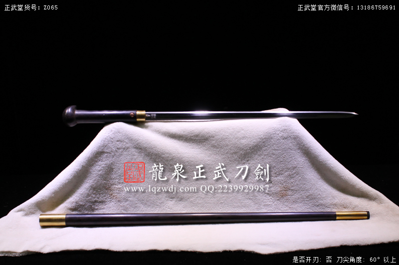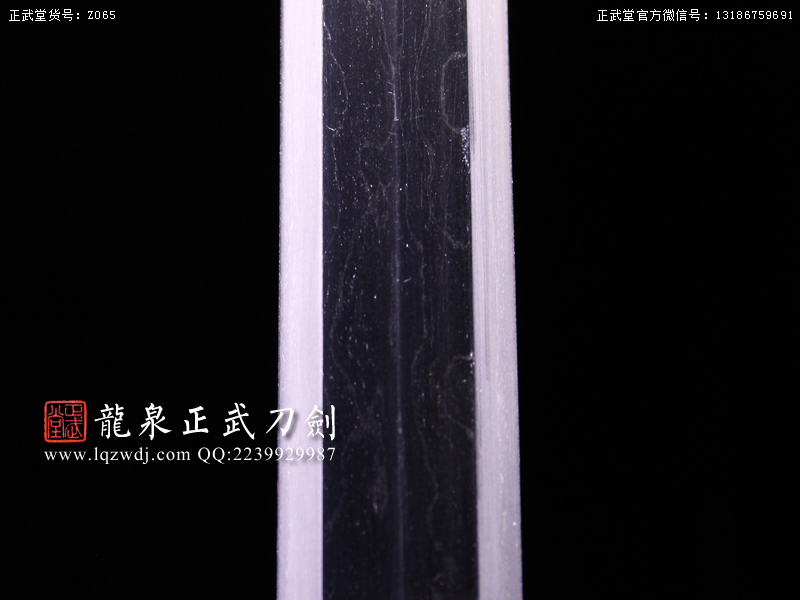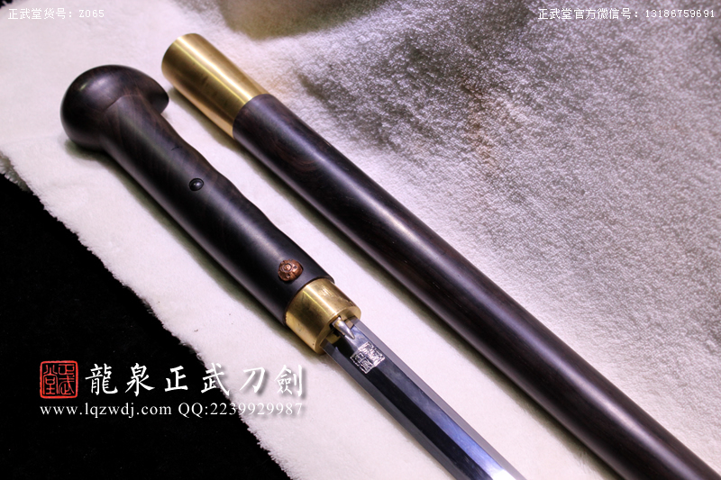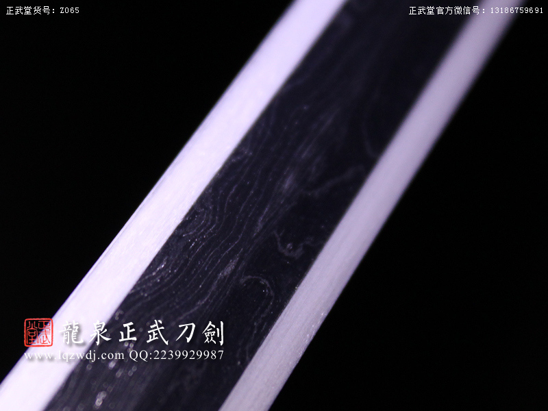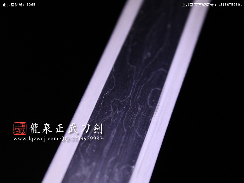 作品鍛造工藝說明:手工折疊鍛打花紋刀劍,折疊鍛打16000余層,夾鋼復合,刃身采用中等研磨工藝,硬度:58度。