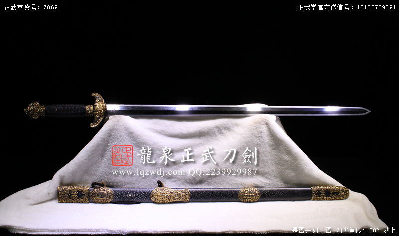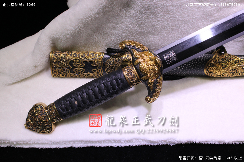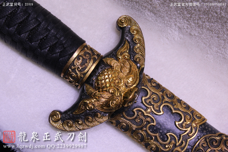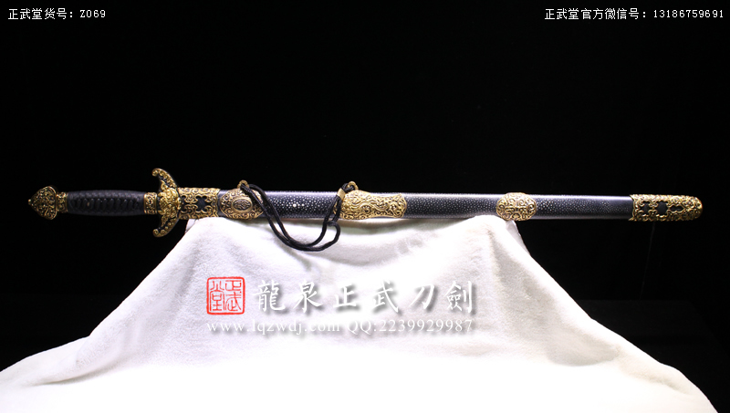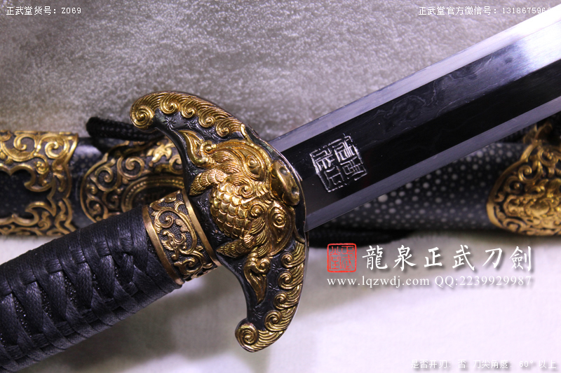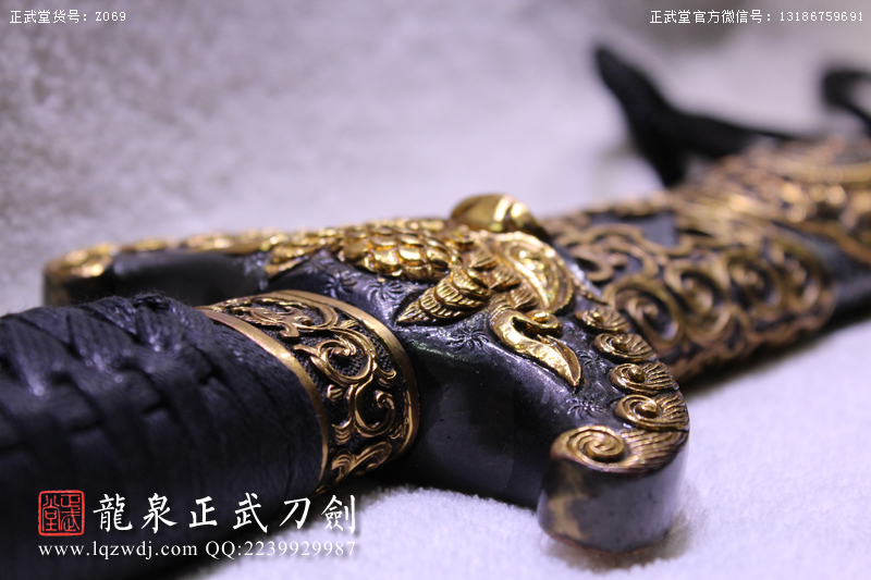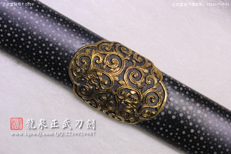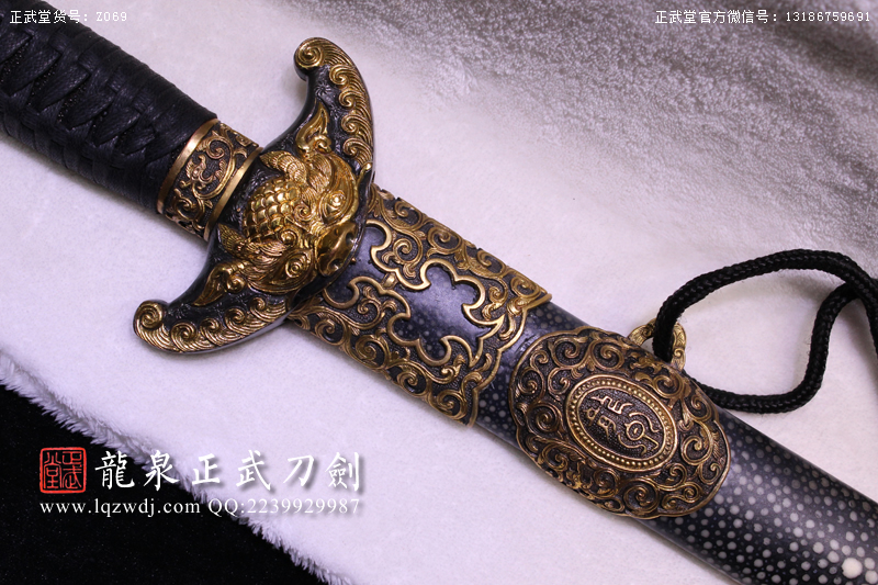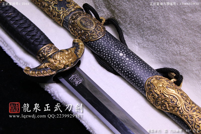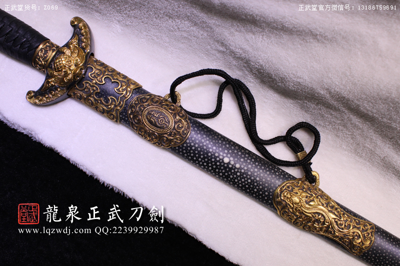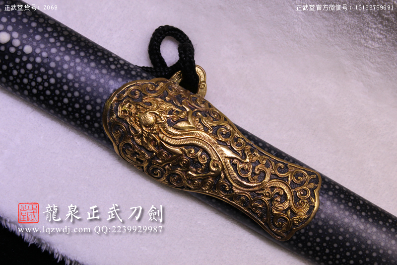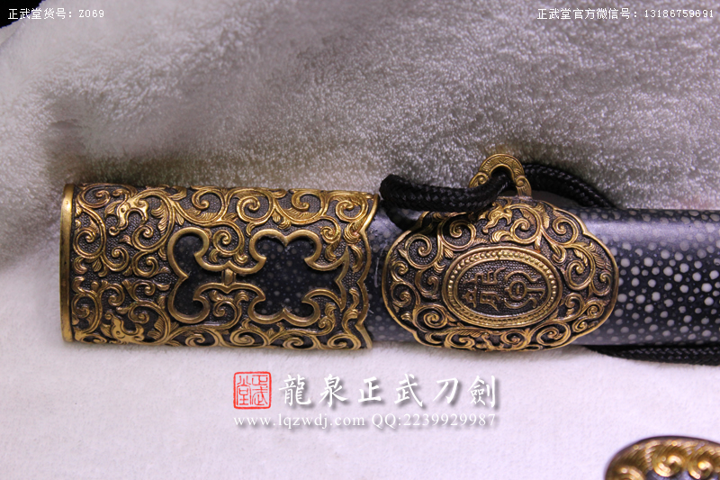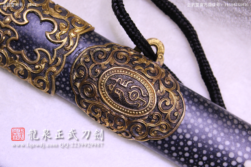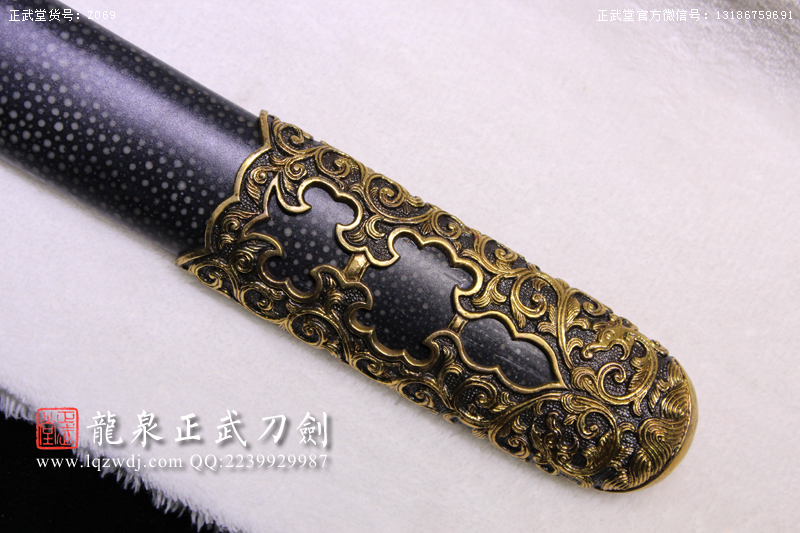 作品名稱:手鍛光復(fù)級黑魚皮鞘銅裝新版龍泉劍