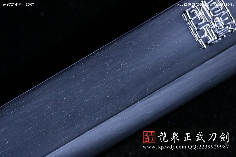 作品名稱:手鍛隕鐵鍛鈍銀手雕八龍裝紫檀木鞘切刃造唐刀