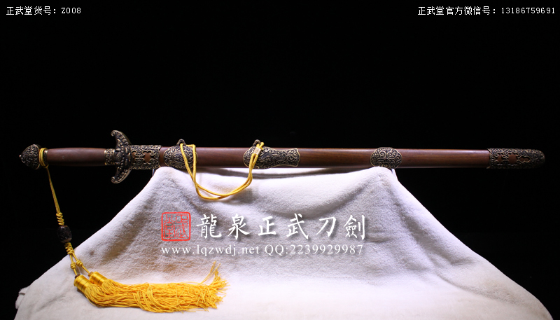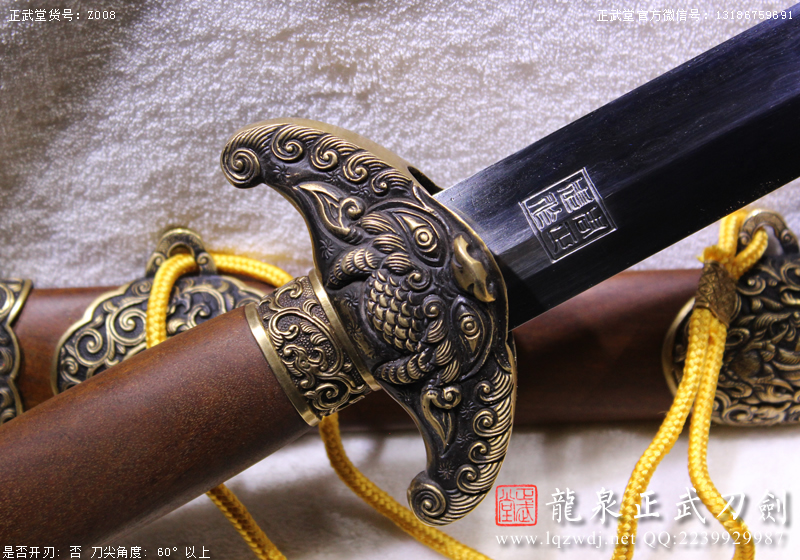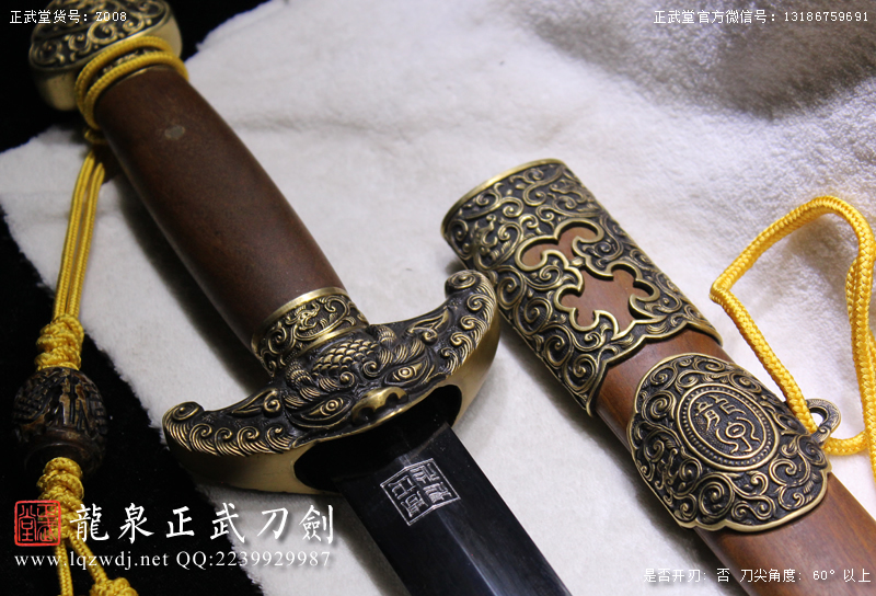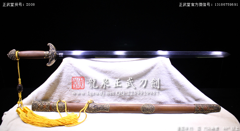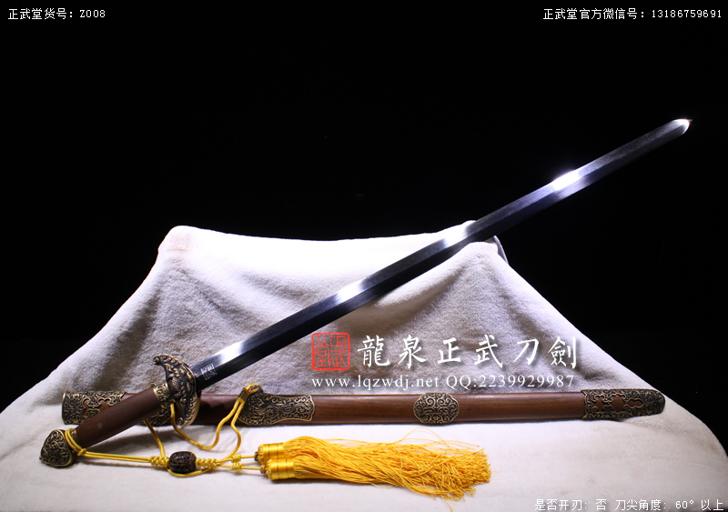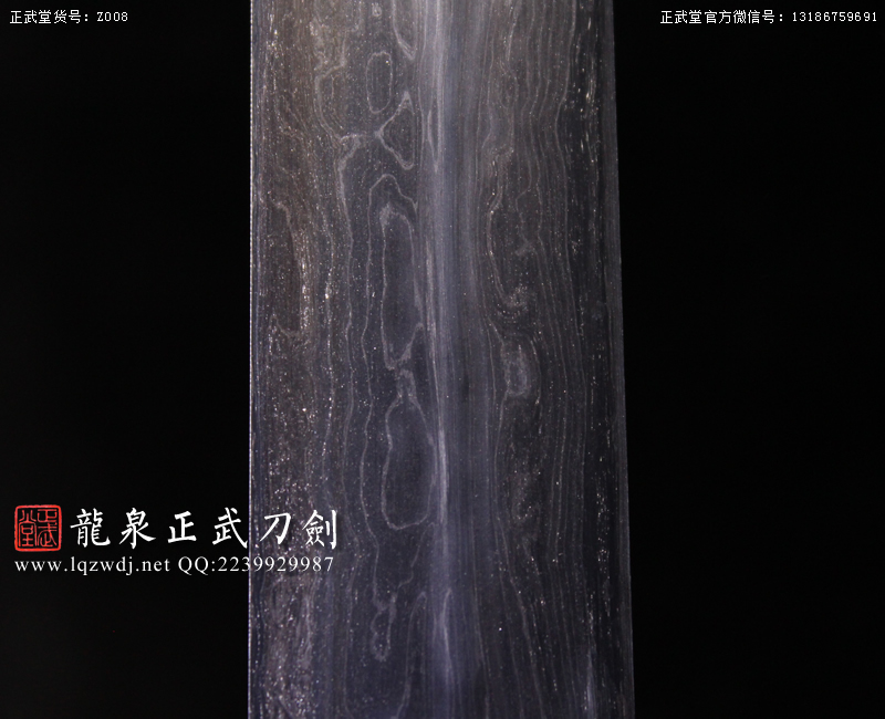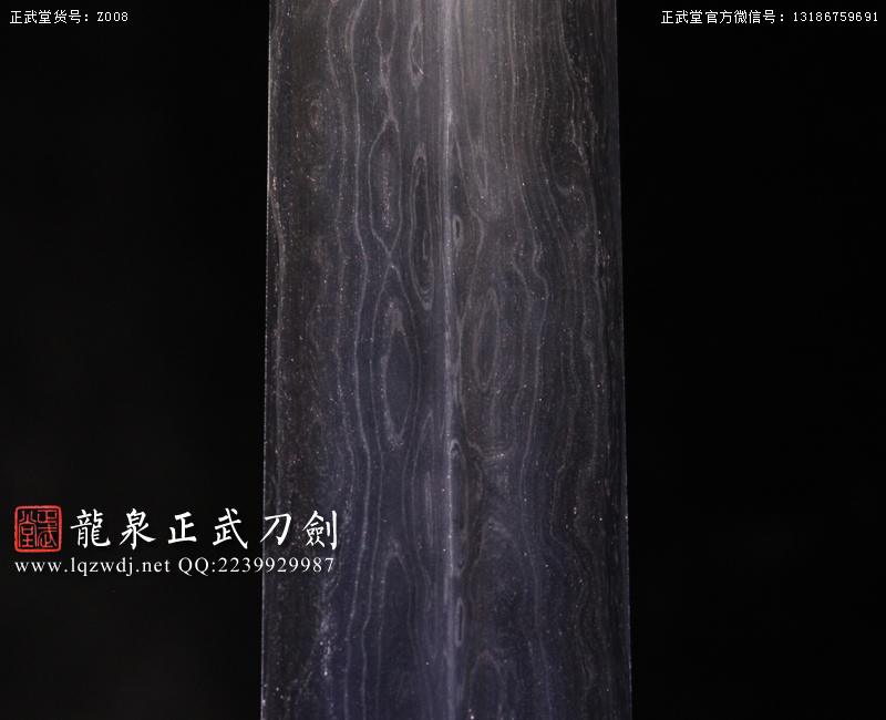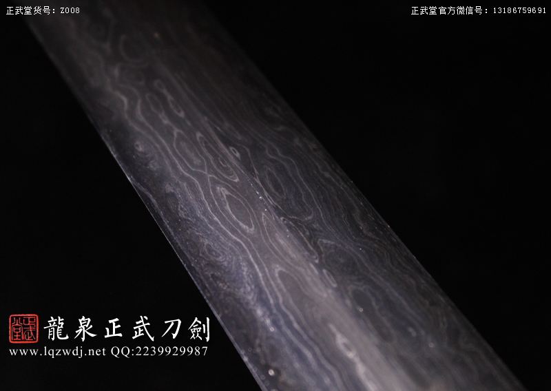 作品鍛造工藝說明:疊鍛打4000余層,夾鋼復(fù)合,劍刃采用一般研磨工藝,硬度:56度