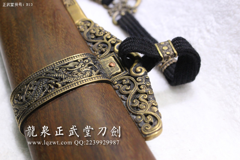 尺寸:全長94,刃長:71,柄長:17,刃寬:3.5;刃厚:0.8;蟻木鞘、柄,裝具為銅材質(zhì);