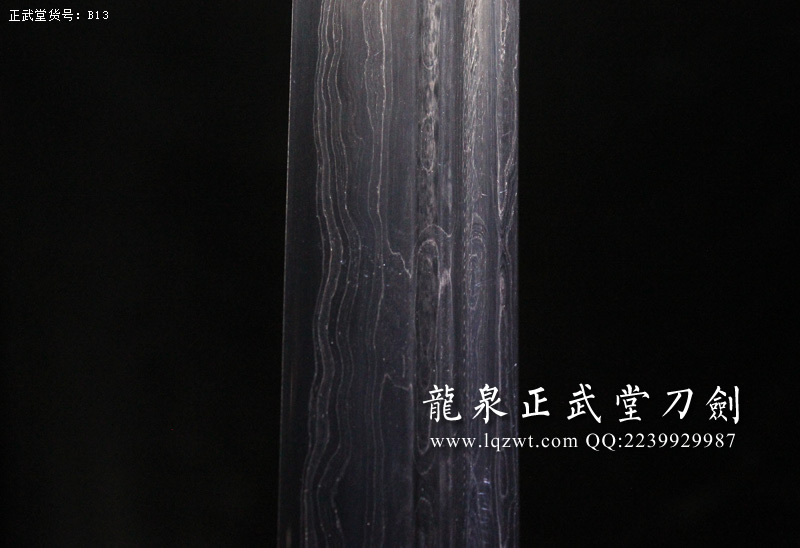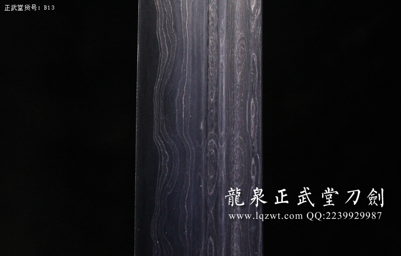 作品鍛造工藝說明:折疊鍛打2000余層,夾鋼復(fù)合,劍刃采用一般研磨工藝,硬度:56度。