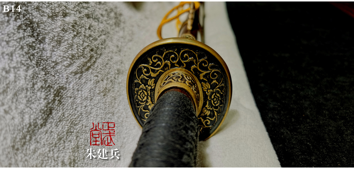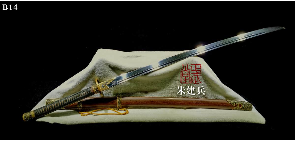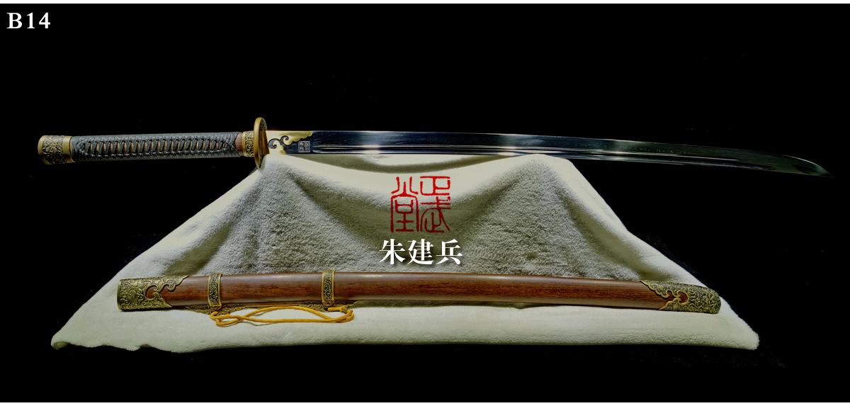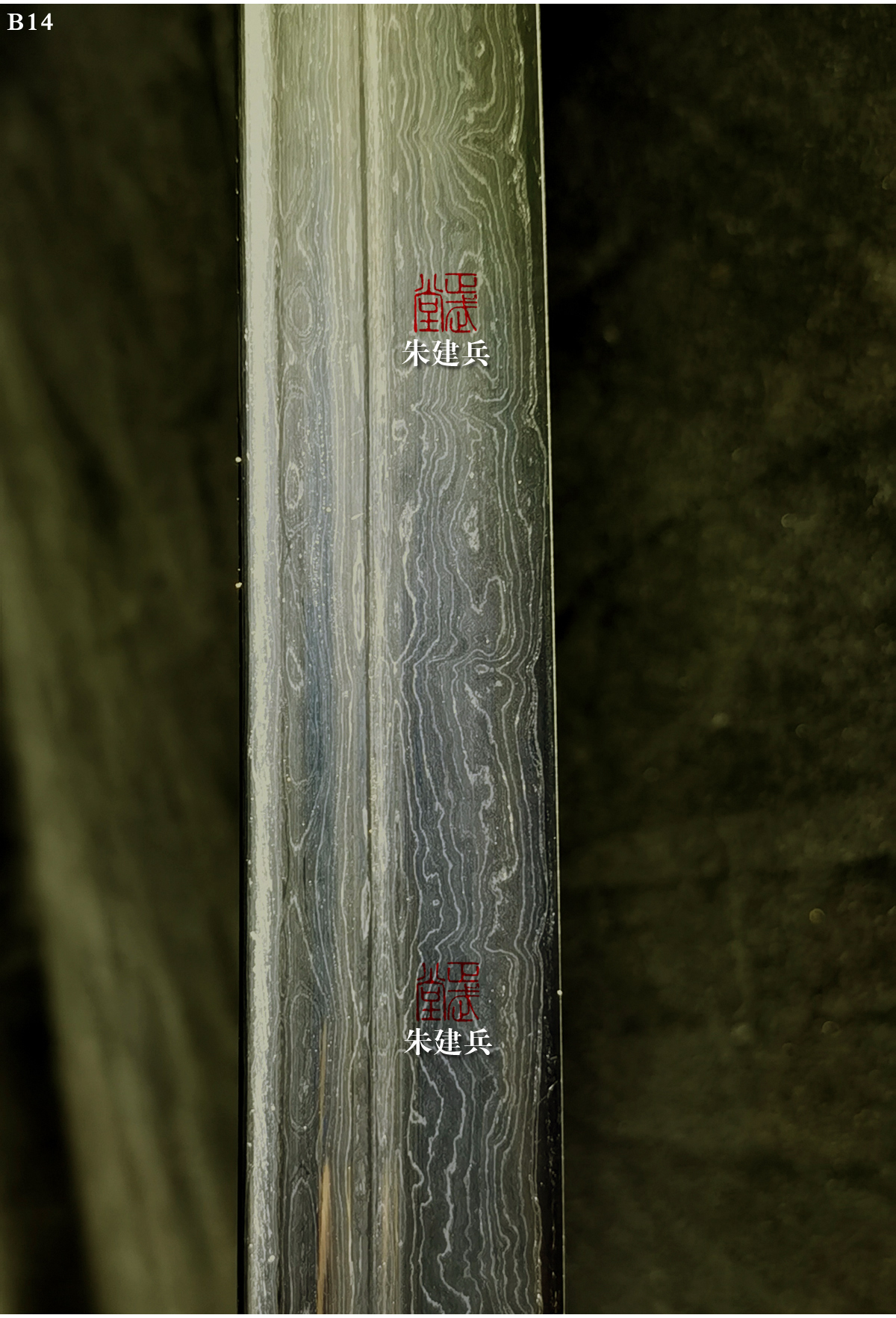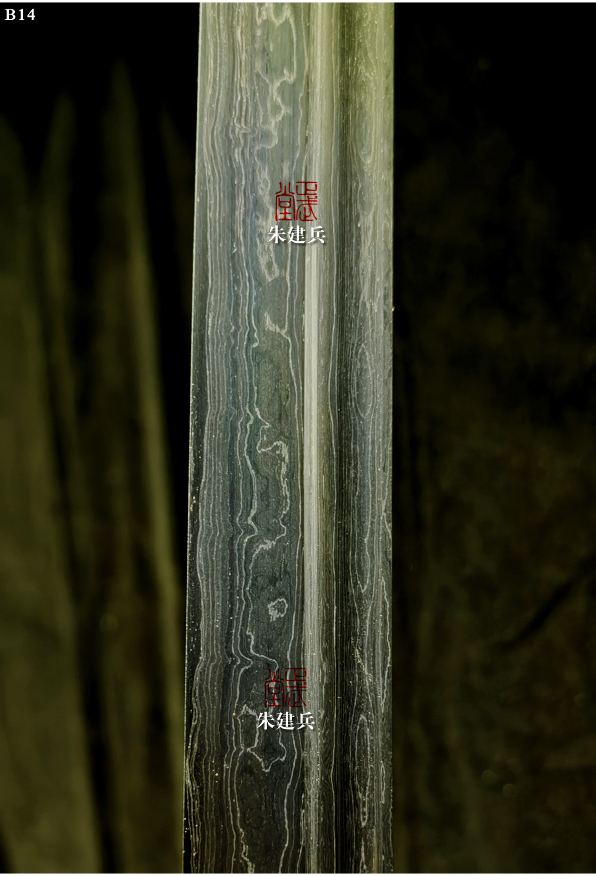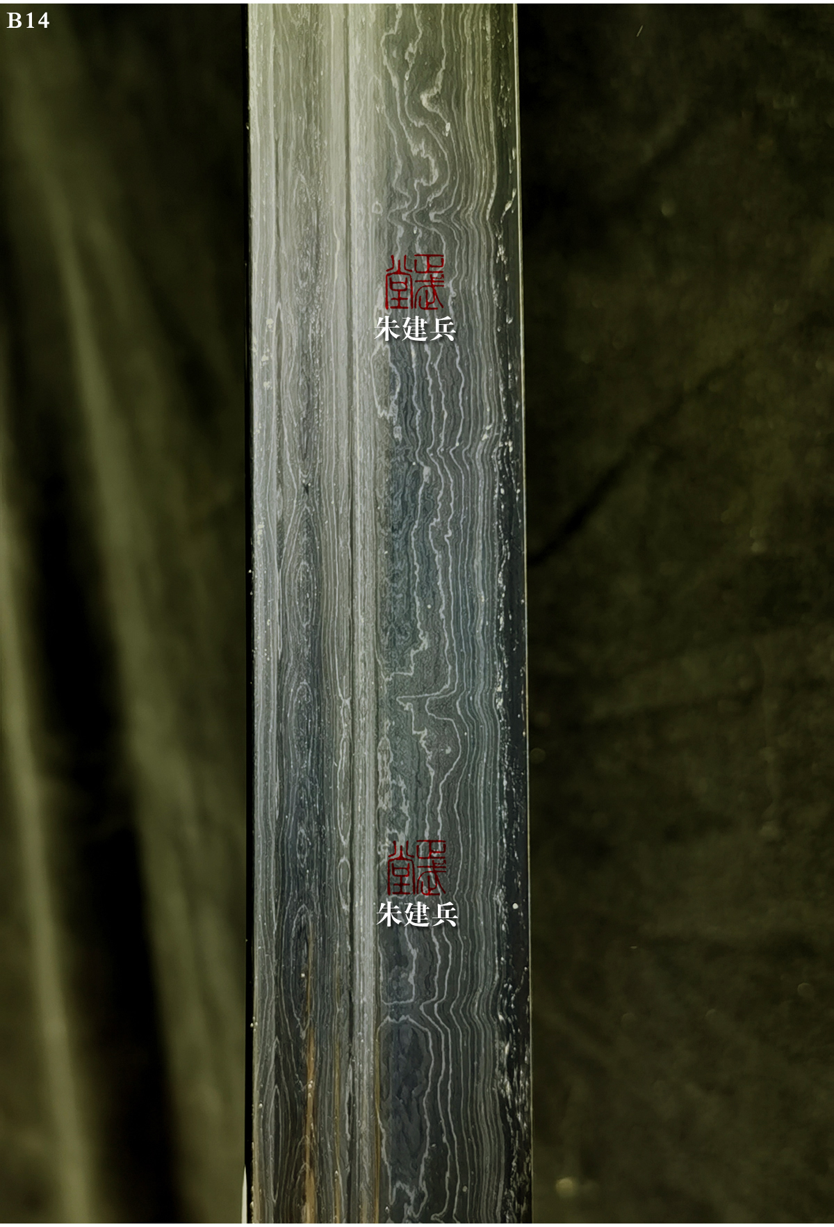 作品鍛造工藝說明:折疊鍛打2000余層,夾鋼復(fù)合,劍刃采用一般研磨工藝。